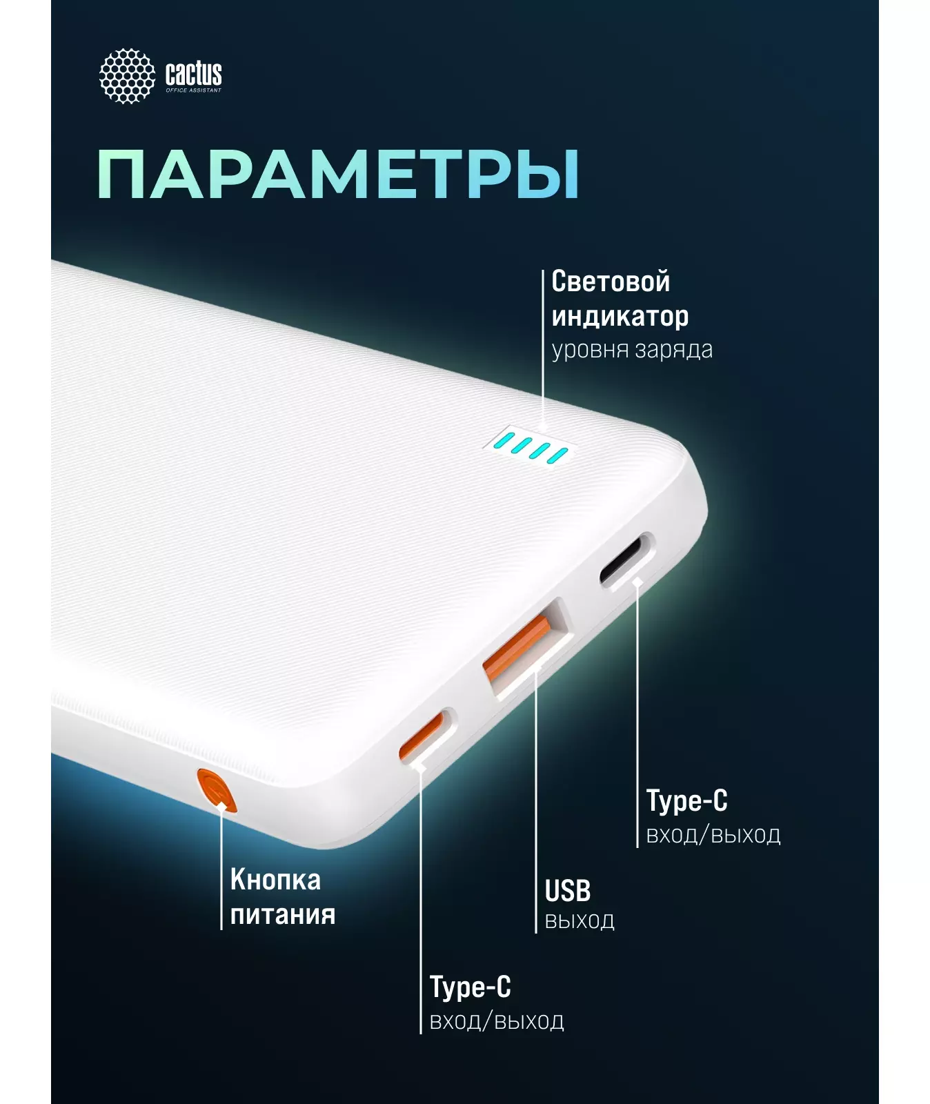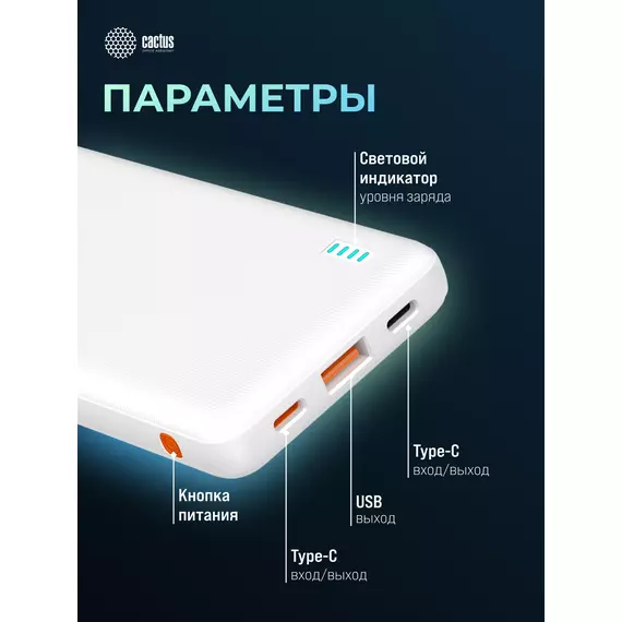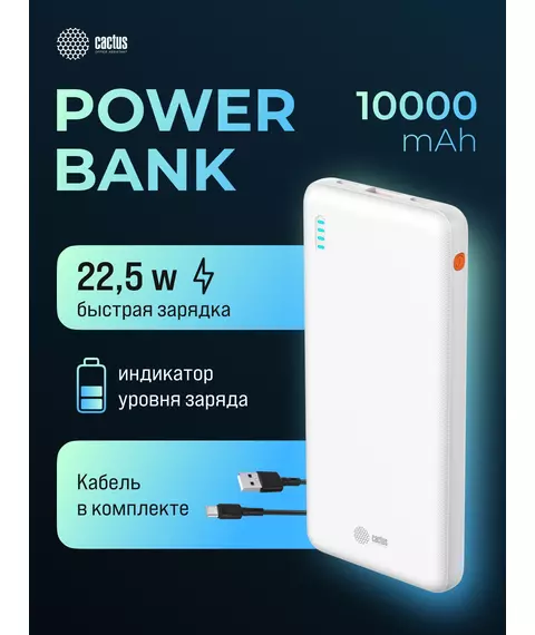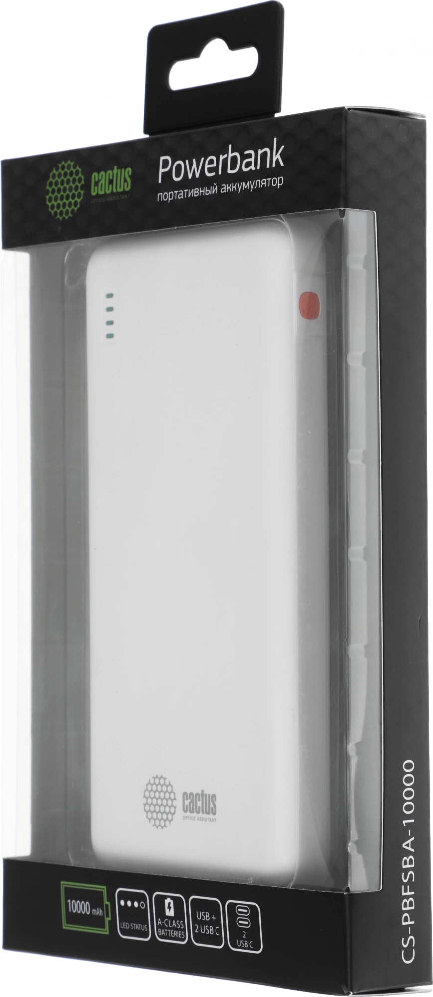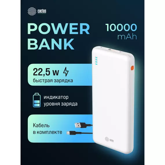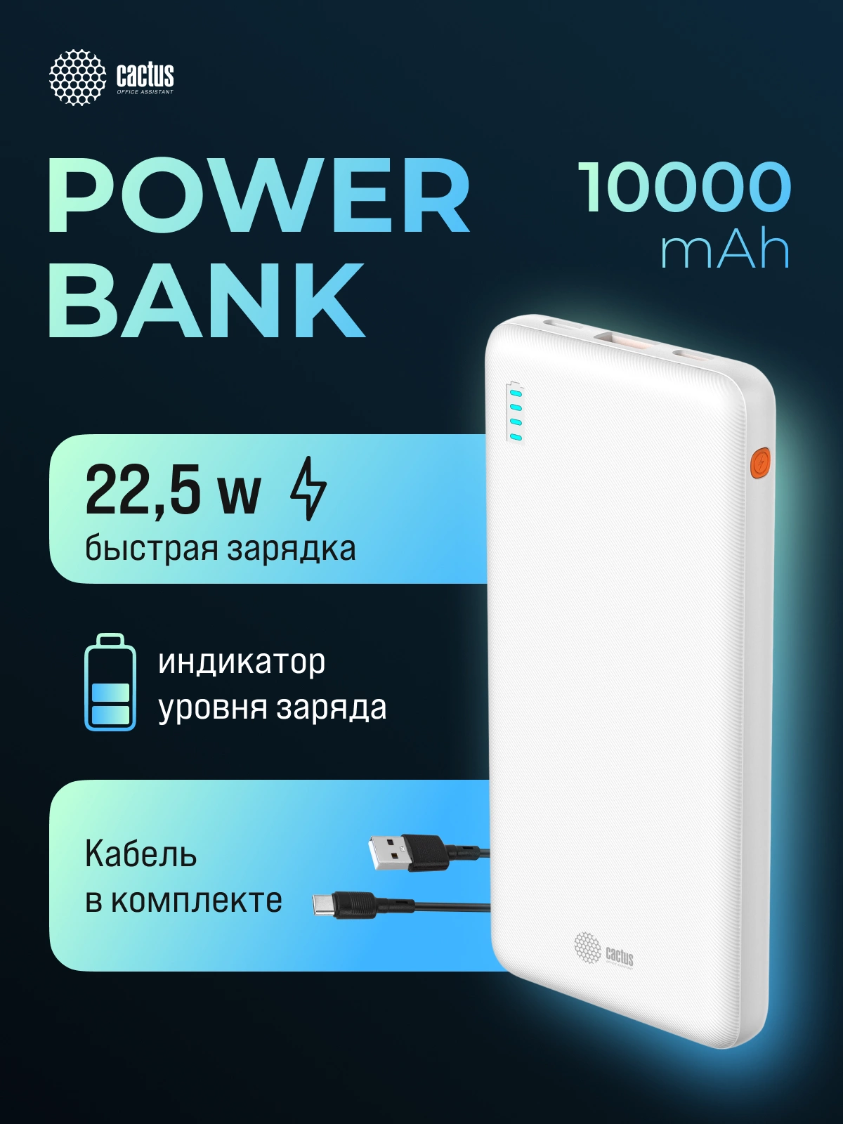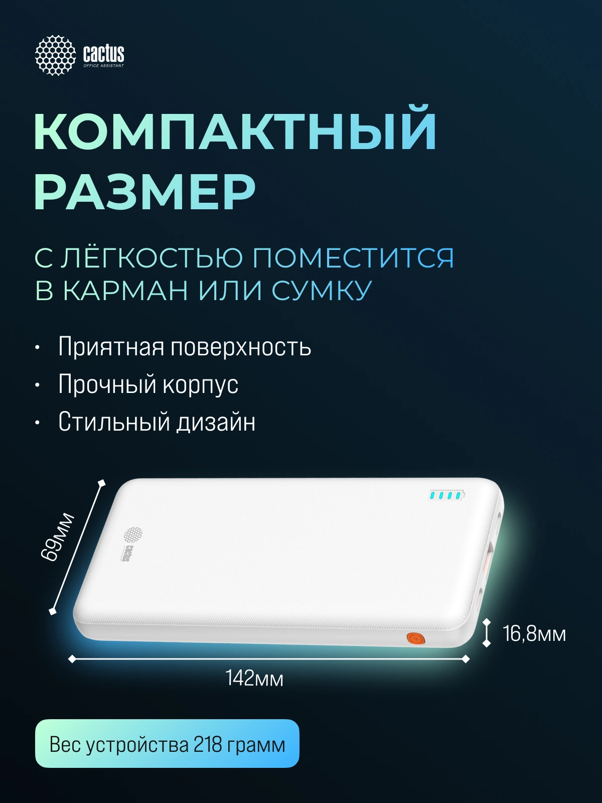 Мобильный аккумулятор Cactus CS-PBFSBA-10000 10000mAh 22.5W 4.5A USB-A/2xUSB-C белый