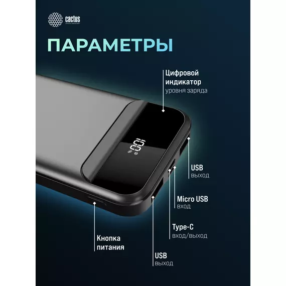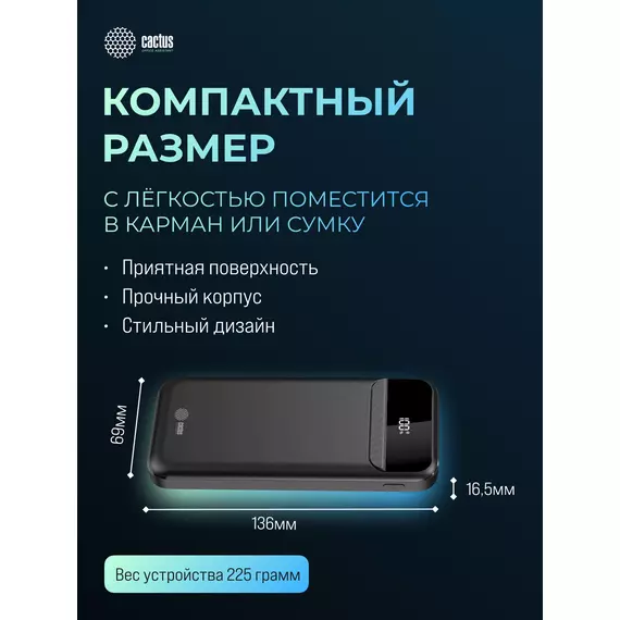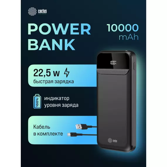 Мобильный аккумулятор Cactus CS-PBFSCA-10000 10000mAh 22.5W 4.5A 2xUSB-A/USB-C черный