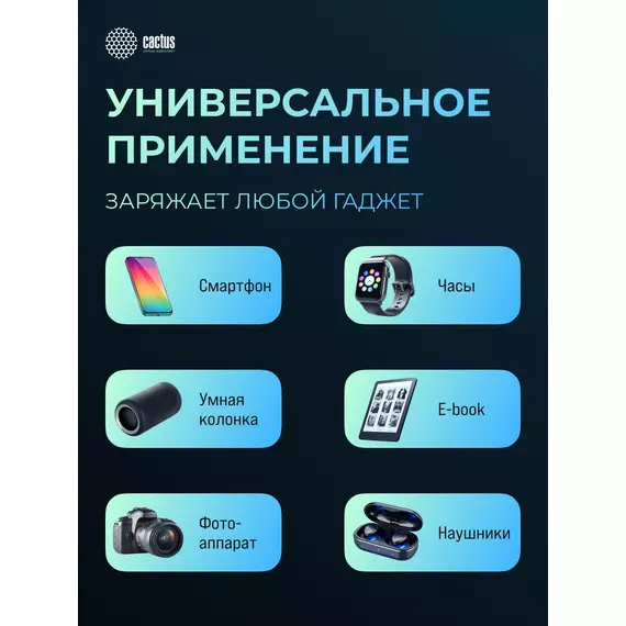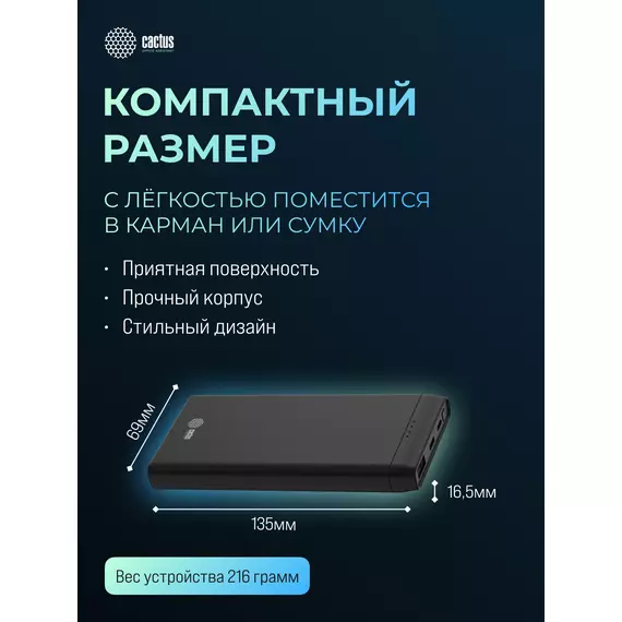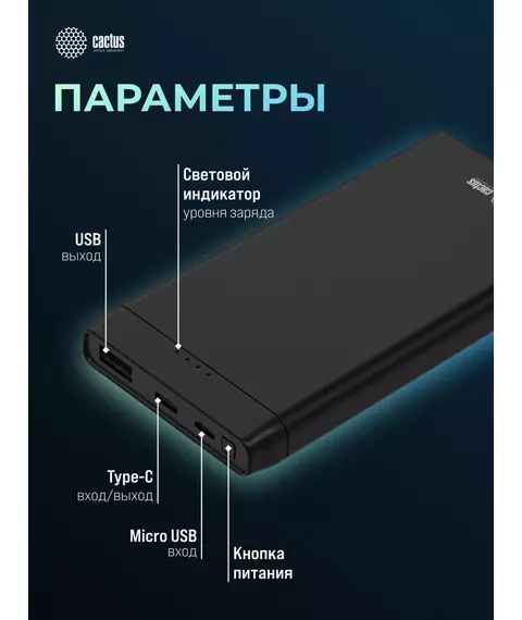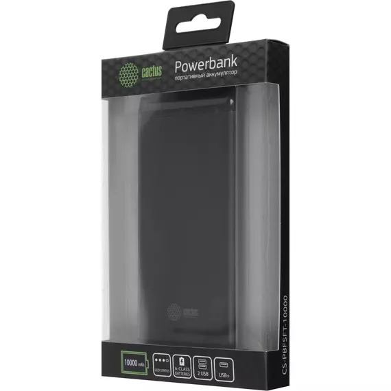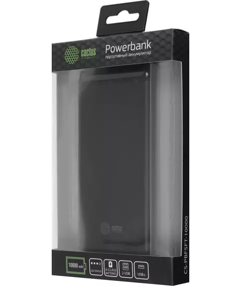 Мобильный аккумулятор Cactus CS-PBFSFT-10000 10000mAh 10.5W 2.1A 2xUSB-A черный