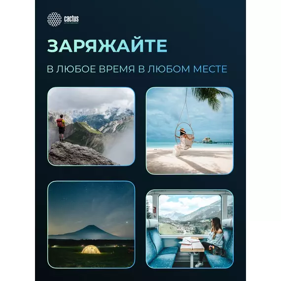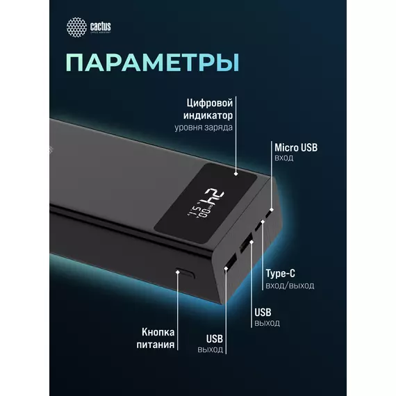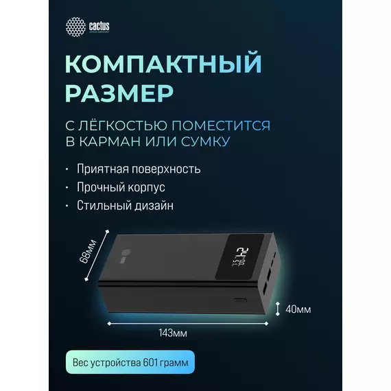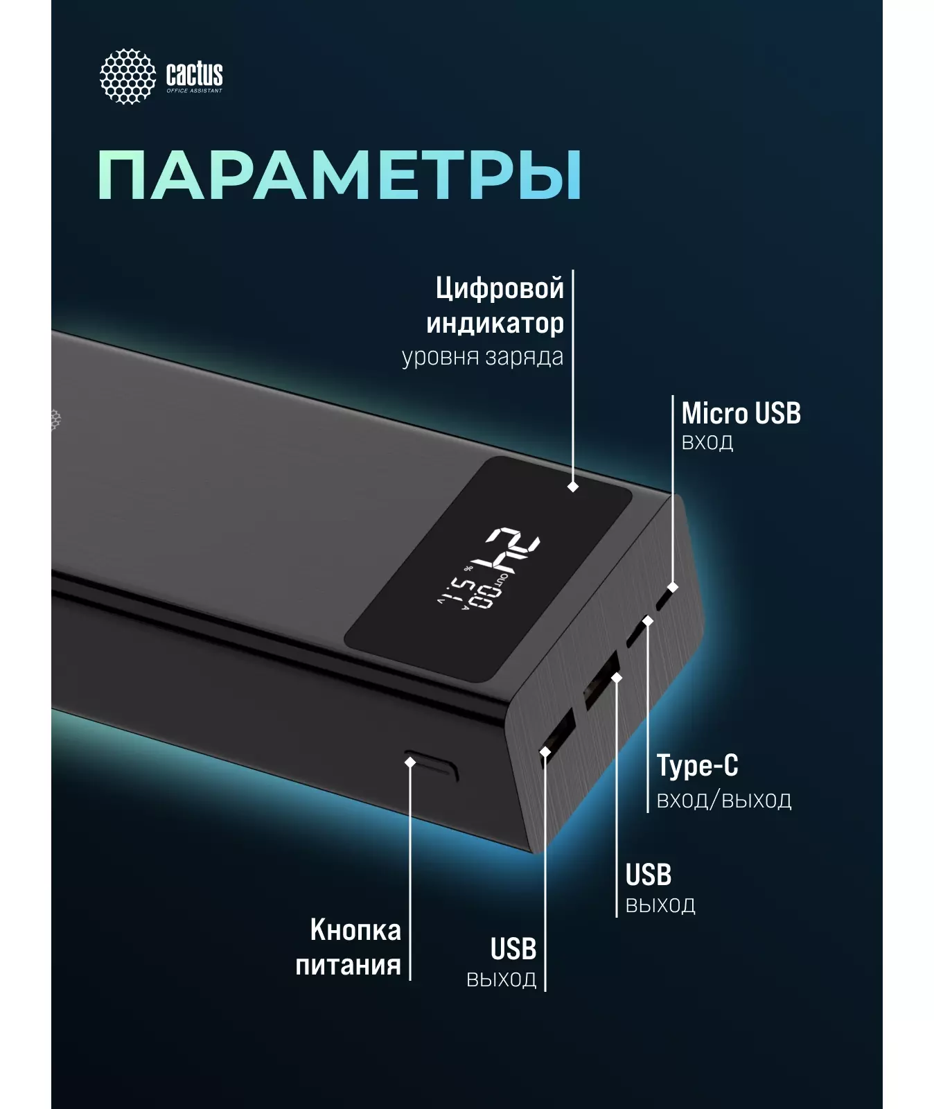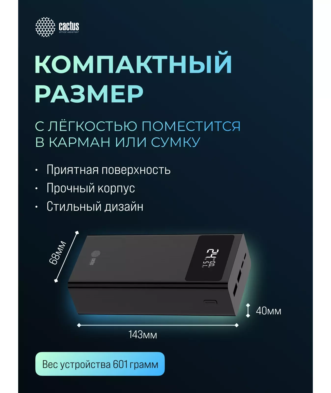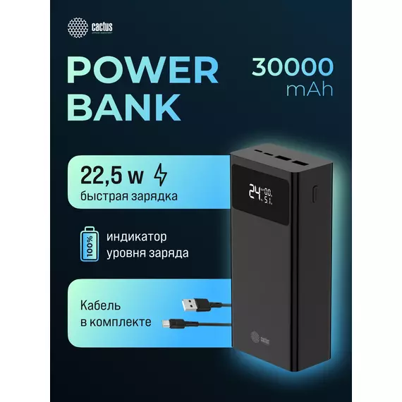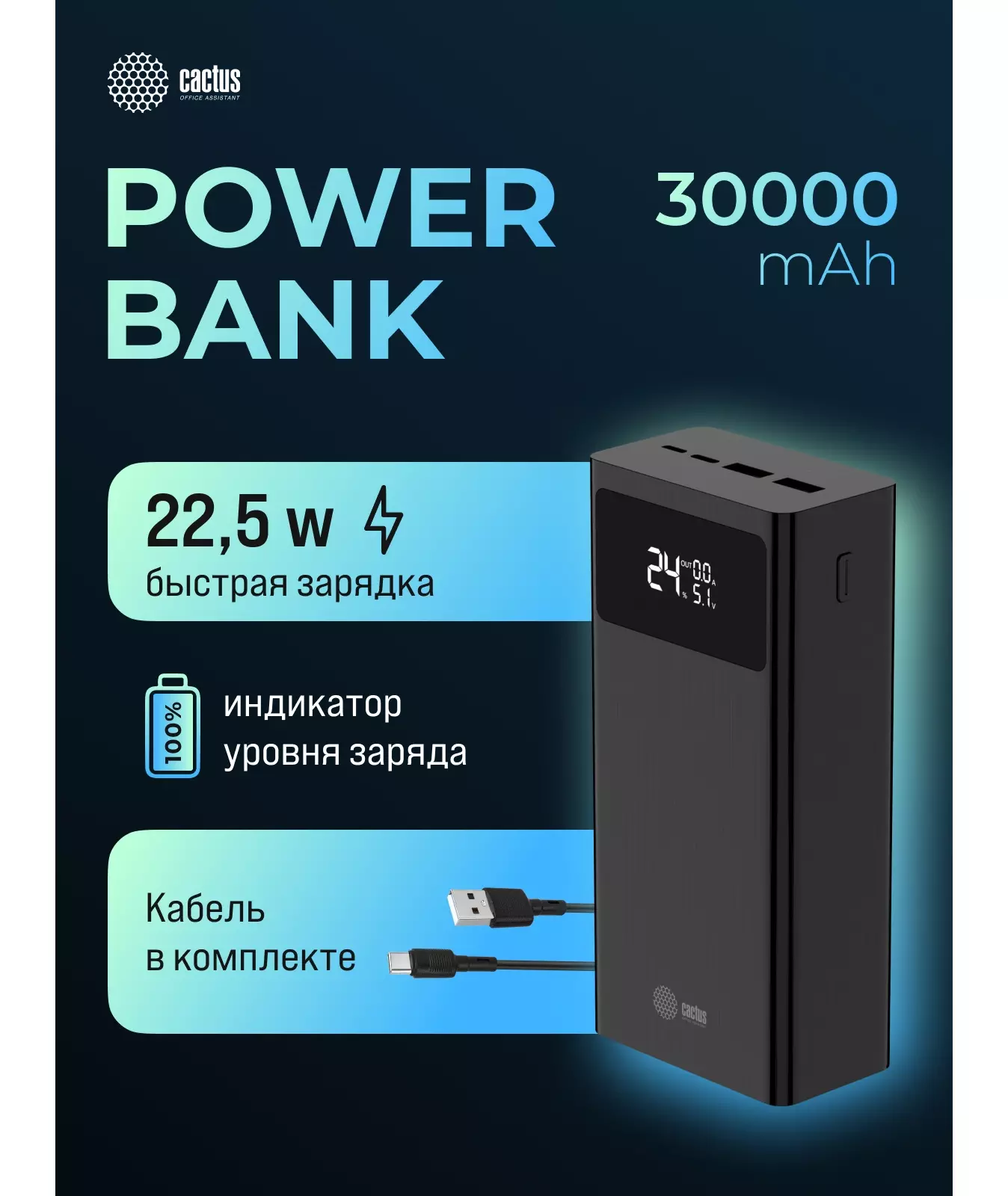 Мобильный аккумулятор Cactus CS-PBFSKA-30000 30000mAh 22.5W 4.5A USB-A/USB-C черный