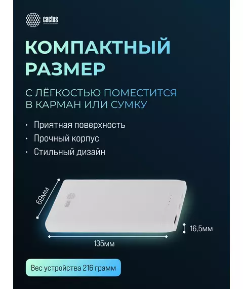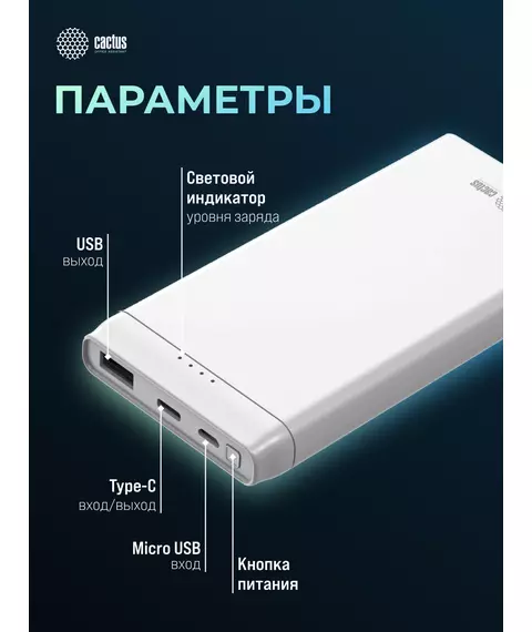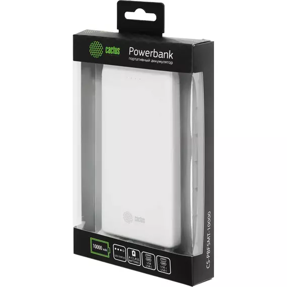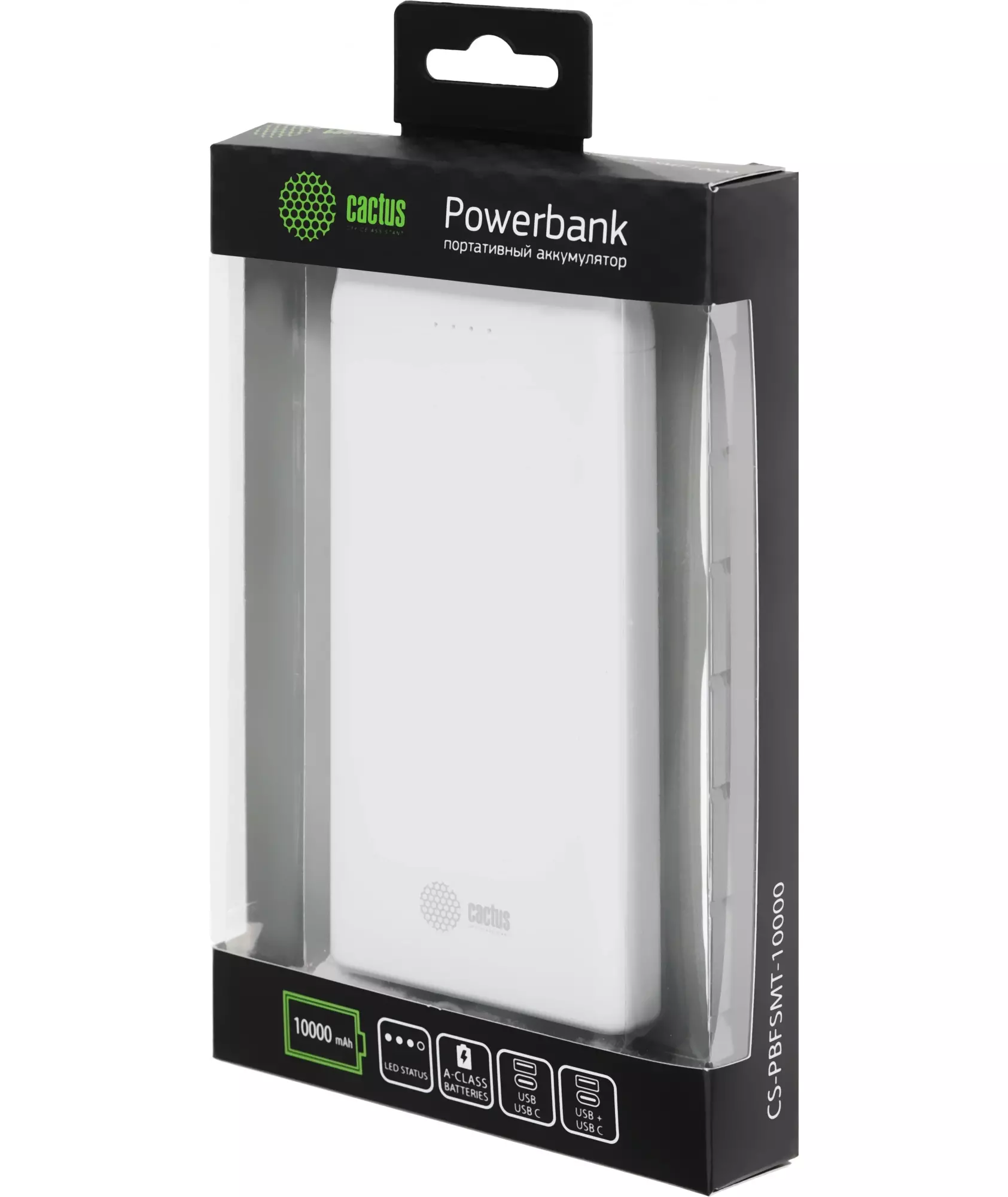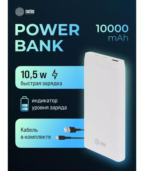 Мобильный аккумулятор Cactus CS-PBFSMT-10000 10000mAh 10.5W 2.1A 2xUSB-A белый