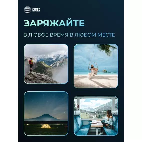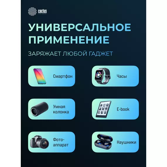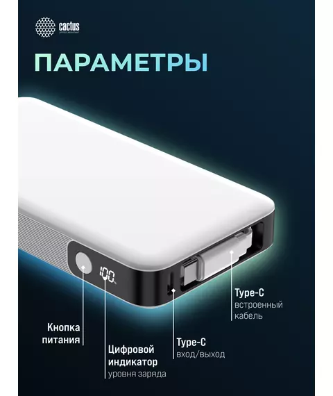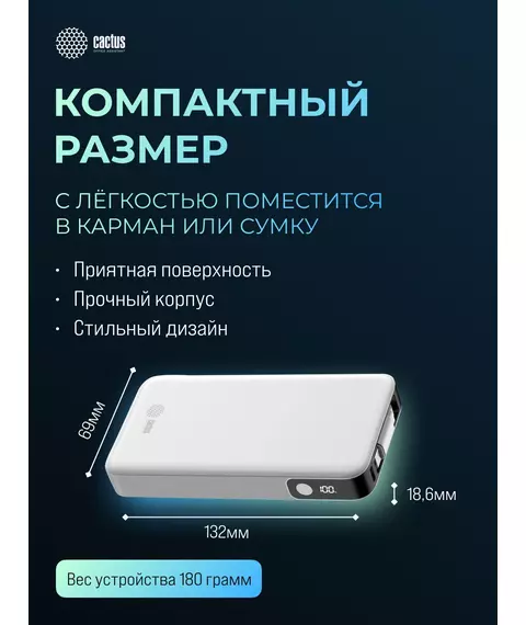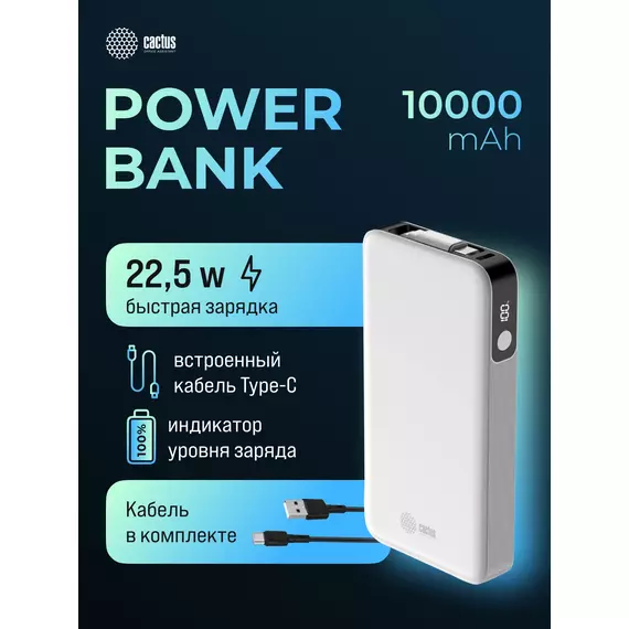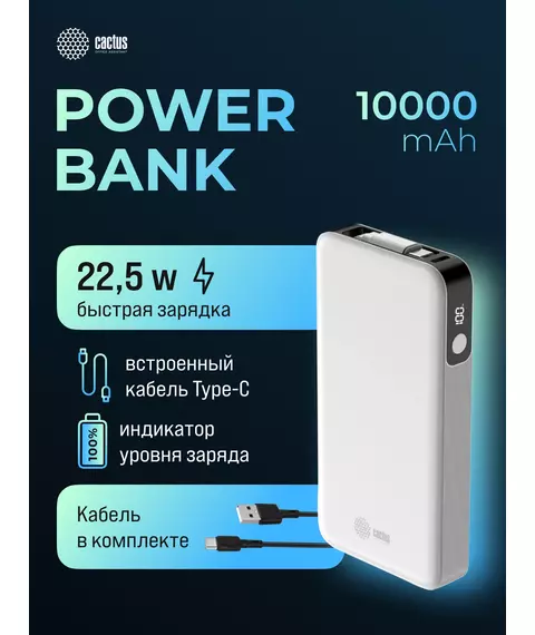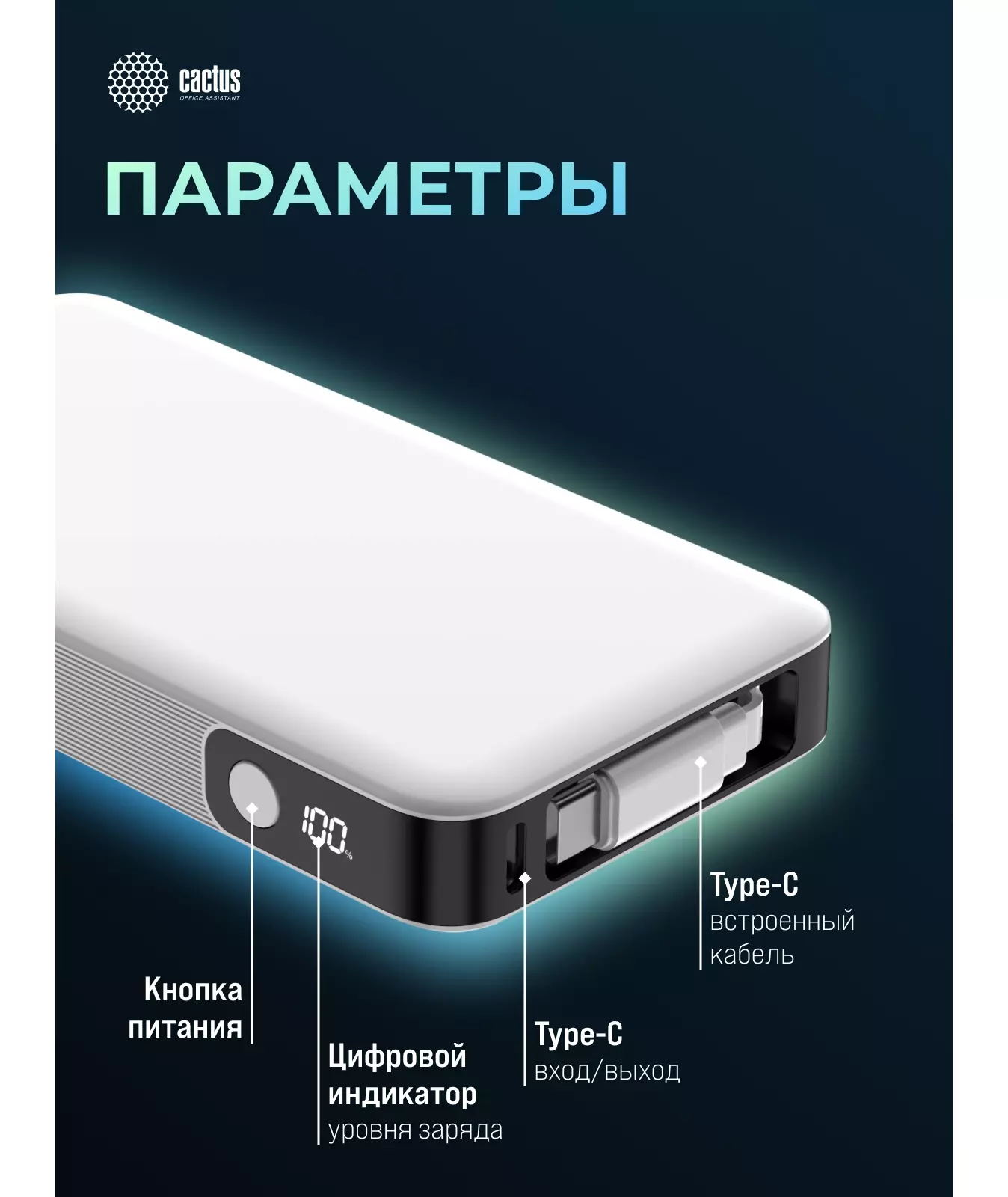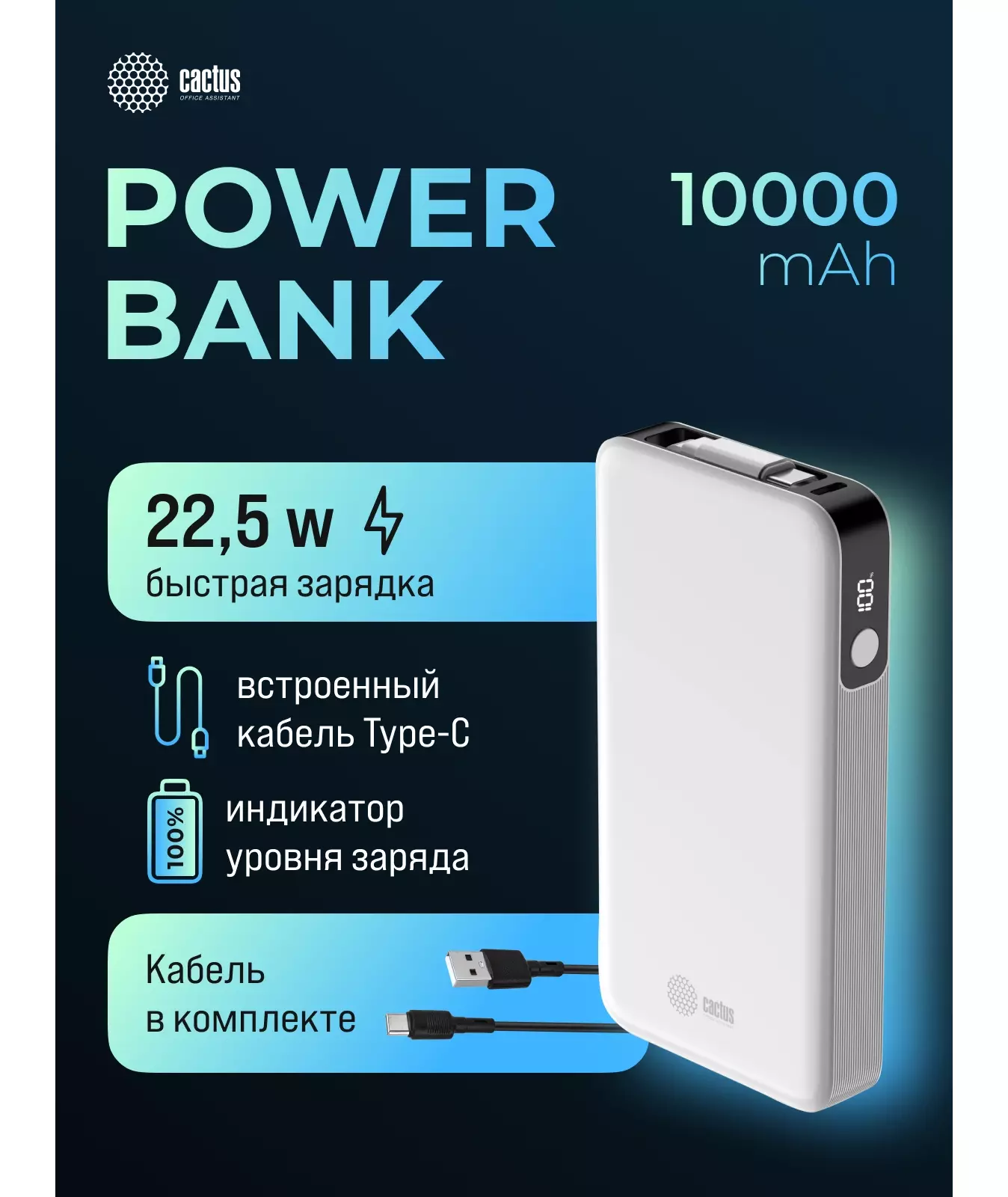 Мобильный аккумулятор Cactus CS-PBFSPA-10000 10000mAh 22.5W 4.5A 2xUSB-C белый