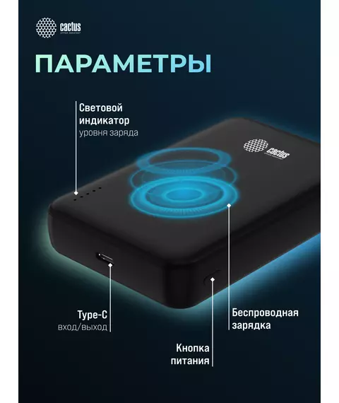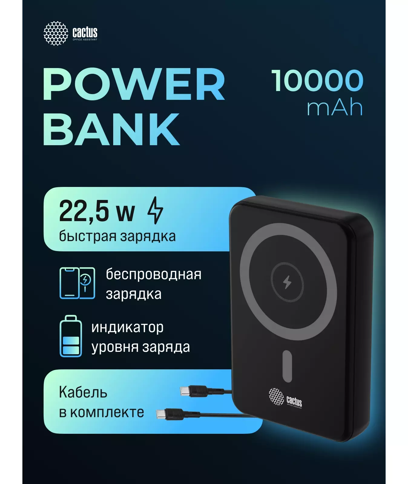 Мобильный аккумулятор Cactus CS-PBFSUA-10000 10000mAh 22.5W 4.5A USB-C беспров.зар. черный