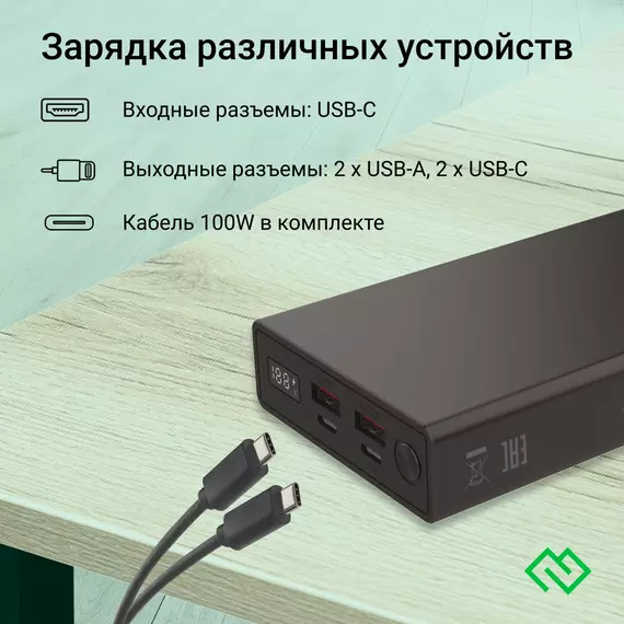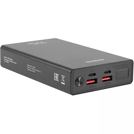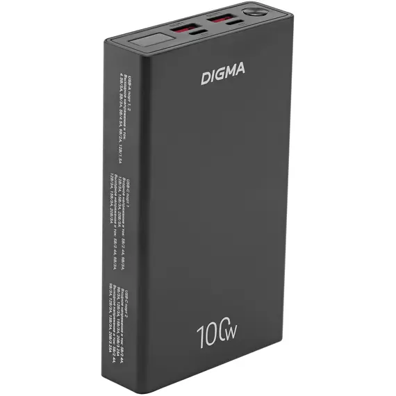 Мобильный аккумулятор Digma DGPD100WA 20000mAh QC3.0/PD3.0 100W 5A 2xUSB-A/2xUSB-C черный [DGPD20A100ABK]