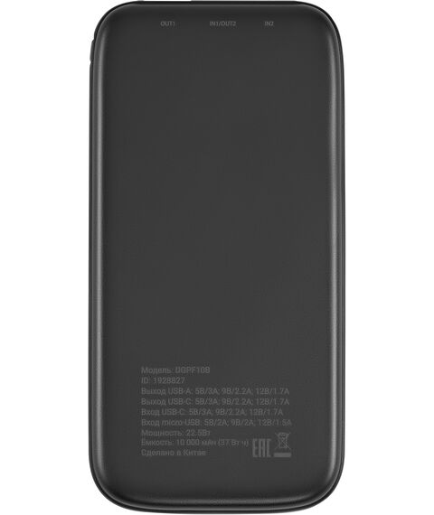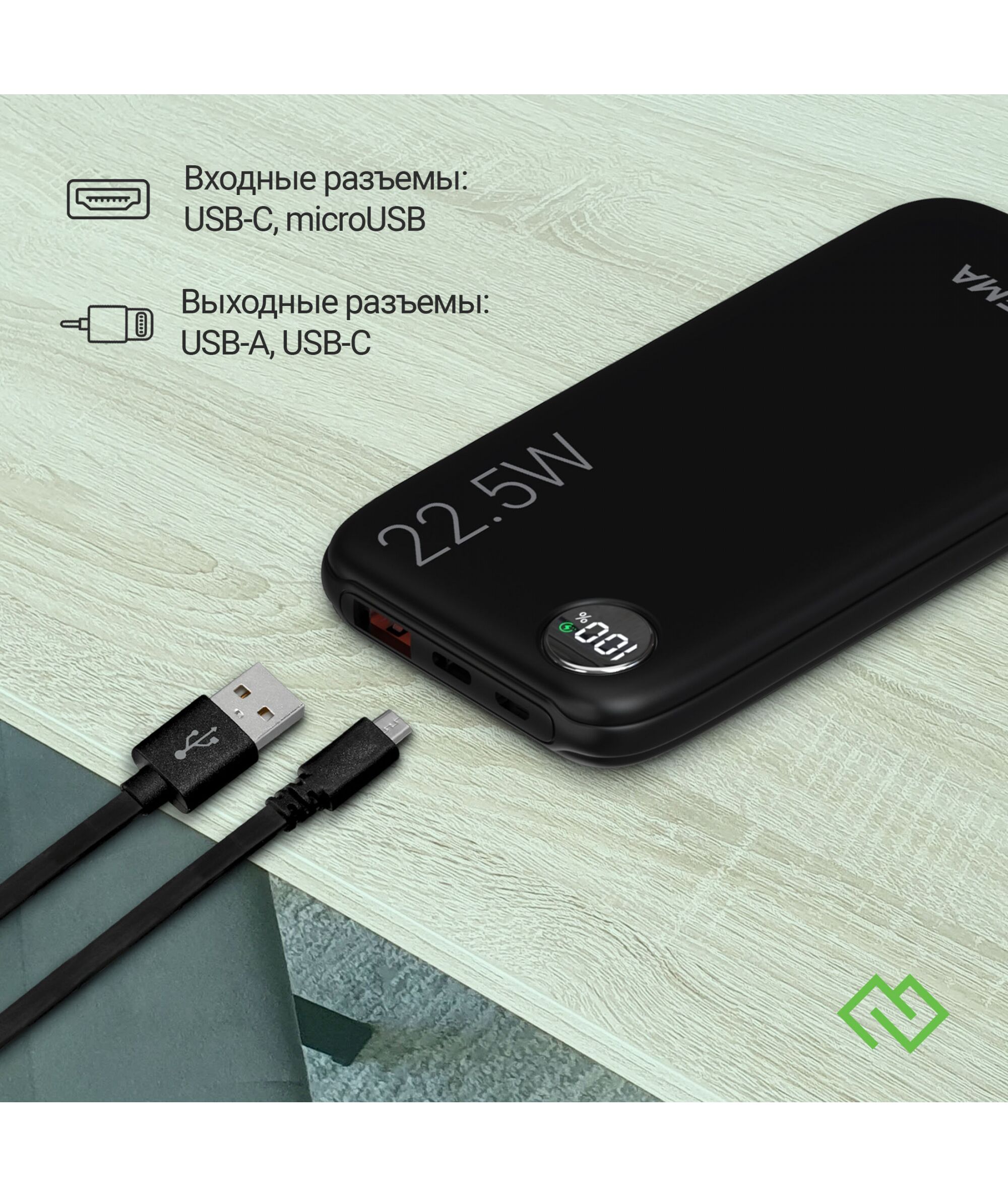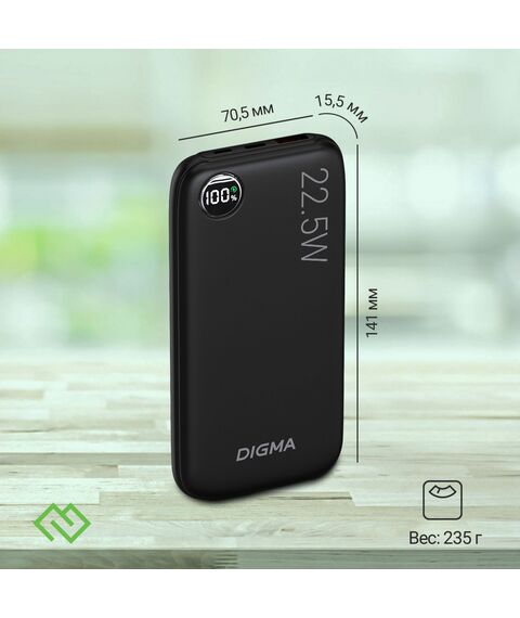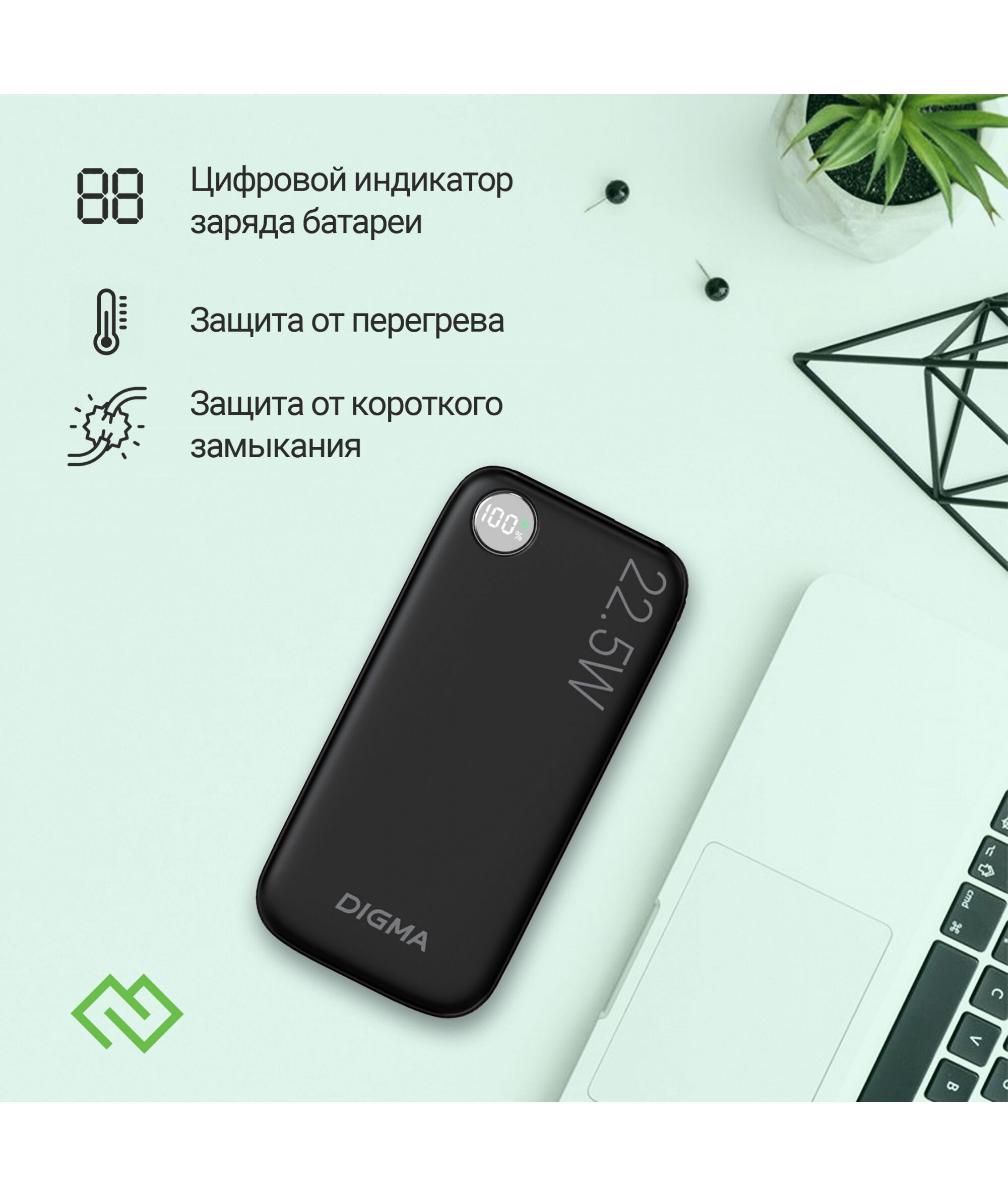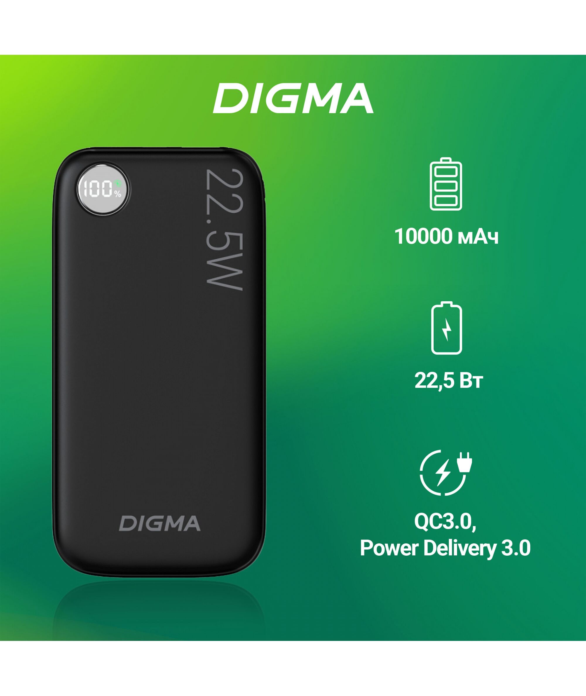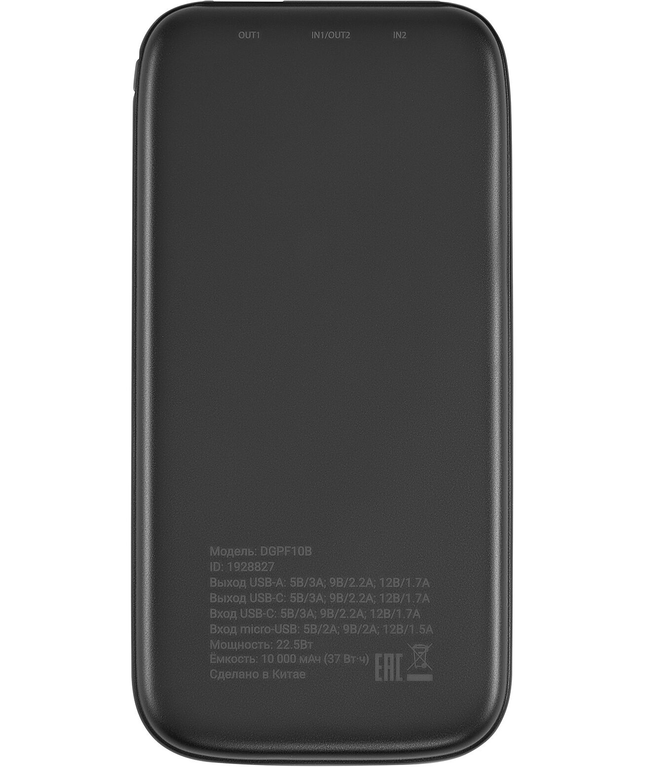 Мобильный аккумулятор Digma DGPF10B 10000mAh QC3.0/PD3.0 22.5W 3A USB-A/USB-C черный [DGPF10B22PBK]