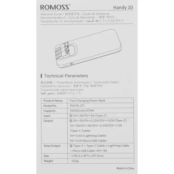 Мобильный аккумулятор Romoss PHC10 10000mAh 22.5W 3A USB-A/USB-C черный [6958377521748]