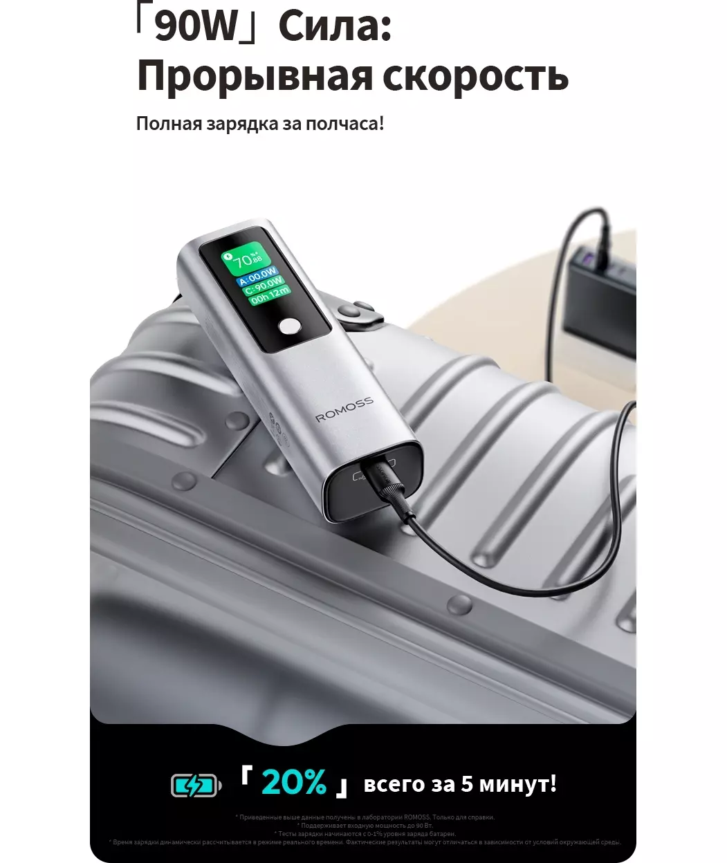 Мобильный аккумулятор Romoss PPU10 10000mAh QC/PD 130W 5A USB-A/USB-C серебристый/черный [6958377523001]
