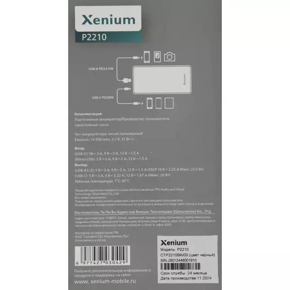 Мобильный аккумулятор Xenium CTP2210 10000mAh 22.5W 5A 2xUSB-A/USB-C серый [CTP2210BK/00]