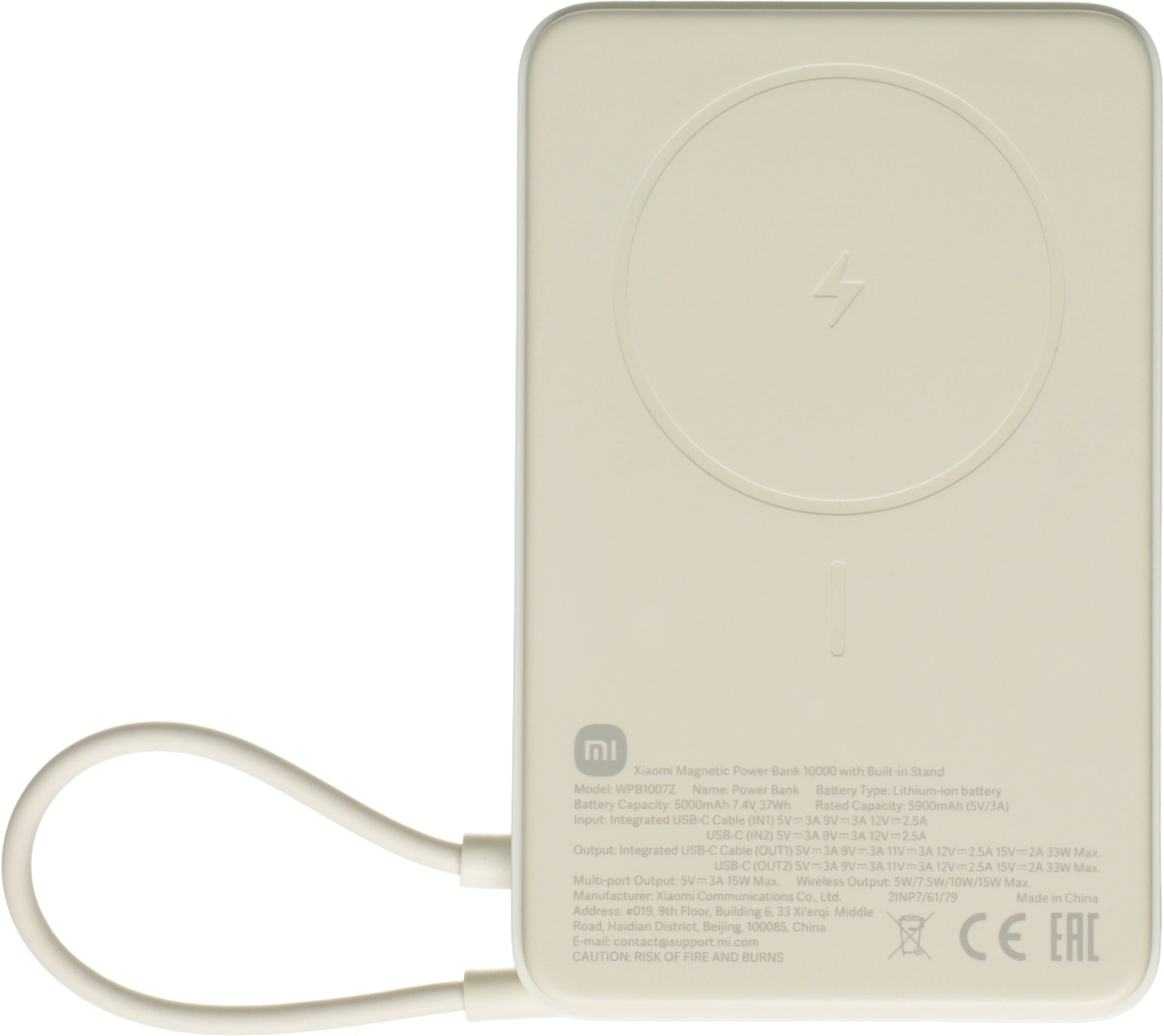 Мобильный аккумулятор Xiaomi BHR08PBGL Magnetic 10000mAh QC3.0/PD3.0 33W 3A USB-C беспров.зар. бежевый