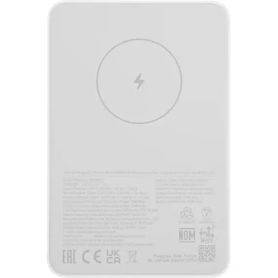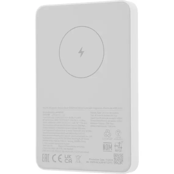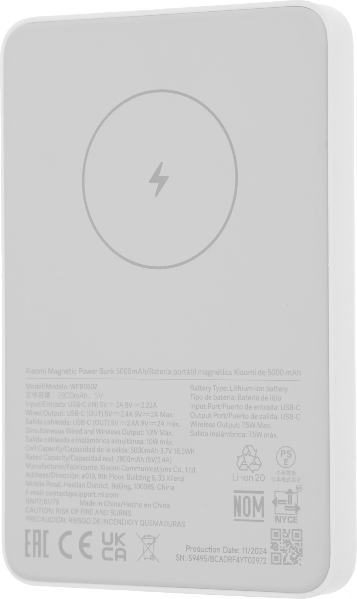 Мобильный аккумулятор Xiaomi BHR9303GL 5000mAh 18W 2.4A USB-C беспров.зар. белый