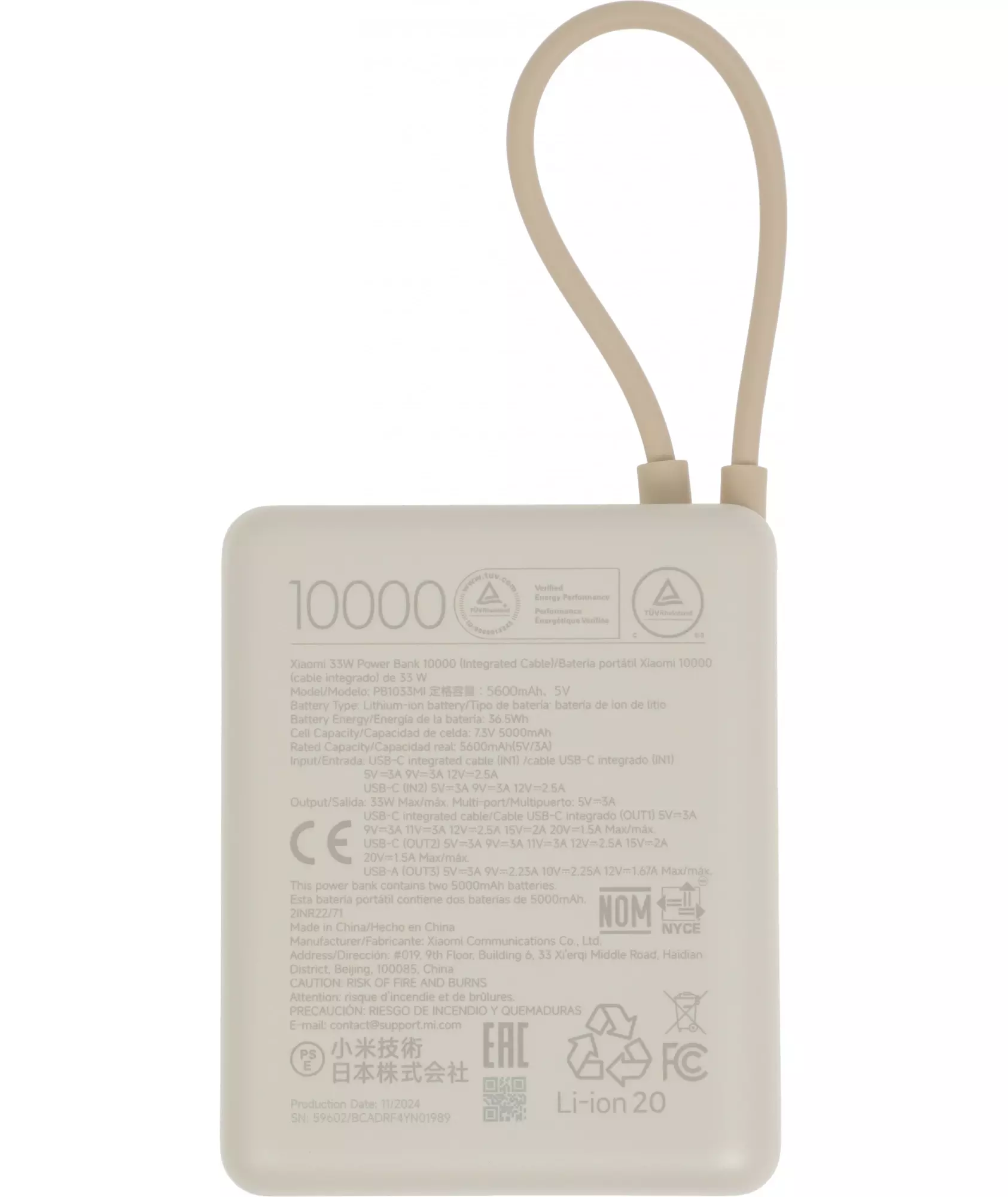 Мобильный аккумулятор Xiaomi BHR9333GL 10000mAh PD 33W 3A USB-A/USB-C бежевый