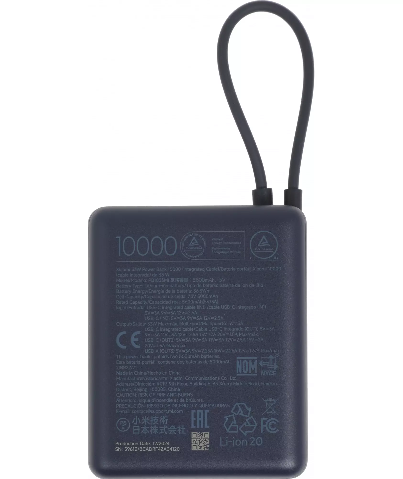 Мобильный аккумулятор Xiaomi BHR9341GL 10000mAh PD 33W 3A USB-A/USB-C синий