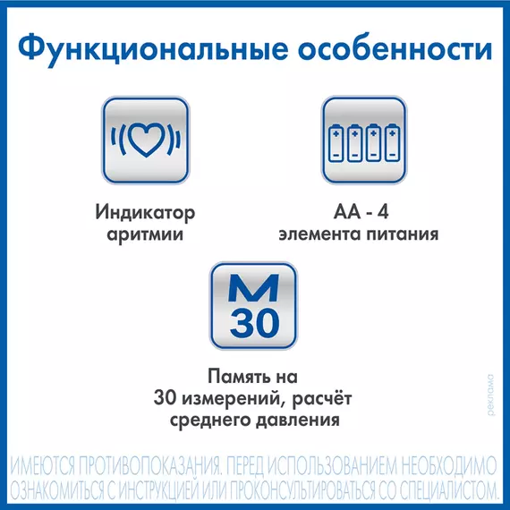 Автоматический цифровой прибор, предназначенный для измерения величин систолического (верхнего), диастолического (нижнего) давления и частоты сердечных сокращений (пульса). Прибор основан на осциллометрическом методе измерения.