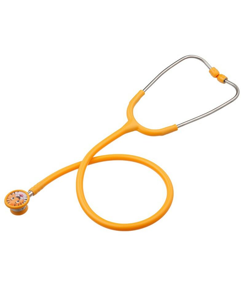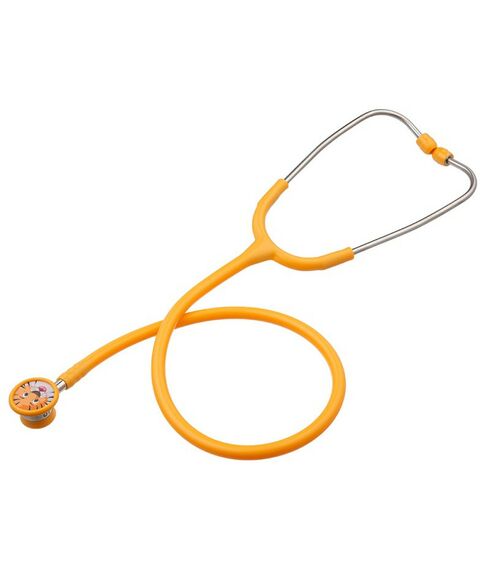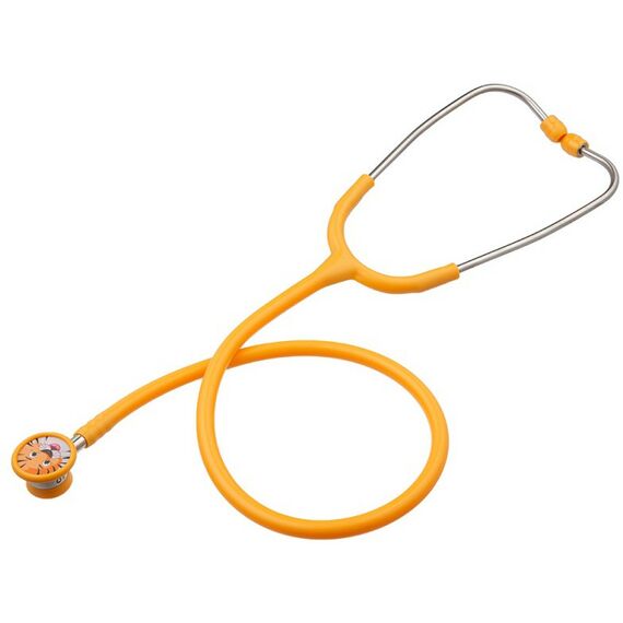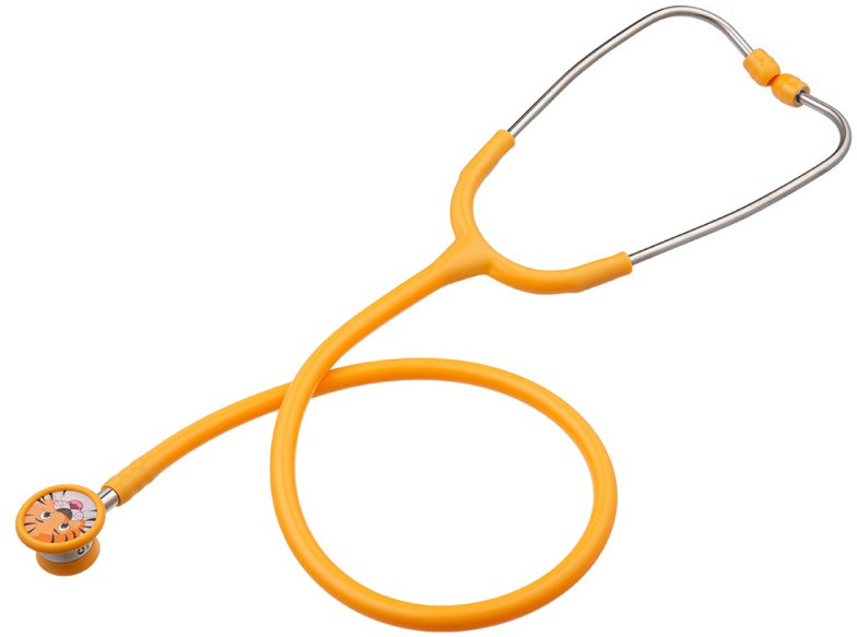 - Колокол и диафрагма уменьшены в диаметре – специально для выслушивания маленьких детей, а наличие пластиковых ободков не вызывает чувство холода у малышей при осмотре. Яркий дизайн прибора отвлечет ребенка от неприятной процедуры. Комфортная длина звукопровода – 62 см, позволяет проводить осмотр с комфортом и для врача, и для пациента