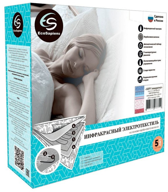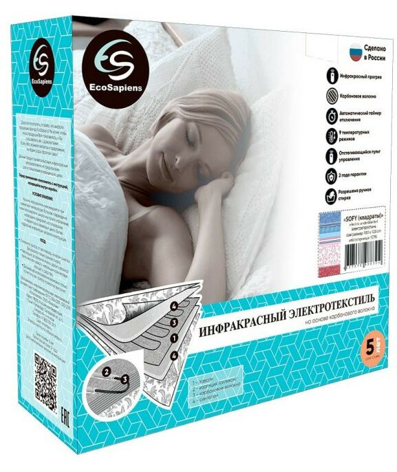Инфракрасная двусторонняя электропростынь с 9 режимами нагрева, функцией автоотключения и отсоединяемым пультом. Электропростынь Sofy является отличной альтернативой классическому пледу. Ею можно укутаться целиком или накрыть отдельные части тела. Также она служит для обогрева постели. Изделие нагревается постепенно. Одна сторона простыни цветная, приятная на ощупь - выполнена из хлопка, другая белая, выполнена из более простого материала - полиэстера. Простынь с инфракрасным прогревом согреет вас дома, на даче, станет отличным подарком для ваших близких.