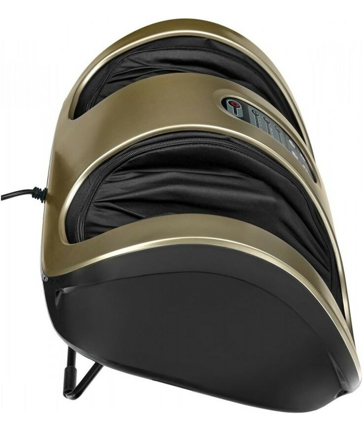 Кроме того, есть возможность выбора скорости вращения массажных роликов и направления их движения. Компактность массажера позволяет с легкостью переносить его в любое удобное место в доме. Достоинством модели является низкий уровень шума во время работы, что позволяет использовать массажер в условиях рабочего офиса, не доставляя неудобств остальным сотрудникам. Наличие пульта управления – еще один приятный бонус, с помощью которого использование массажера станет намного удобней, особенно это смогут оценить пожилые люди и люди с ограниченными физическими возможностями. Благодаря особенностям конструкции, массажер можно применять не только для стоп и лодыжек, но и для проработки кистей рук и предплечий. Устройство неприхотливо в уходе. Поверхность легко протереть сухой салфеткой, а съемные чехлы, при необходимости можно постирать.
