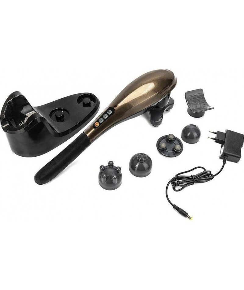 Комплектация: массажер –1 шт, сменные головки – 6 шт, сетевой адаптер – 1шт, инструкция – 1 шт. Назначение: Массаж разных участков тела Характеристики: Материал: АБС пластик, металл. Цвет: черный, золотой. Размер: 43х12,5х16,7 см. Входное напряжение AC 100-240В, 50-60Гц. Номинальное напряжение: DC8.4V 1A Номинальная мощность: 24 Вт Частота вибрации: 3200 об / мин ~ 0 Автоматическое время работы: 15 минут Литиевая батарея 2000 мА/ч Время зарядки 60 мин.