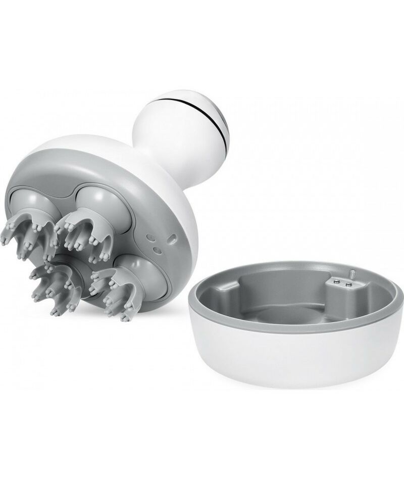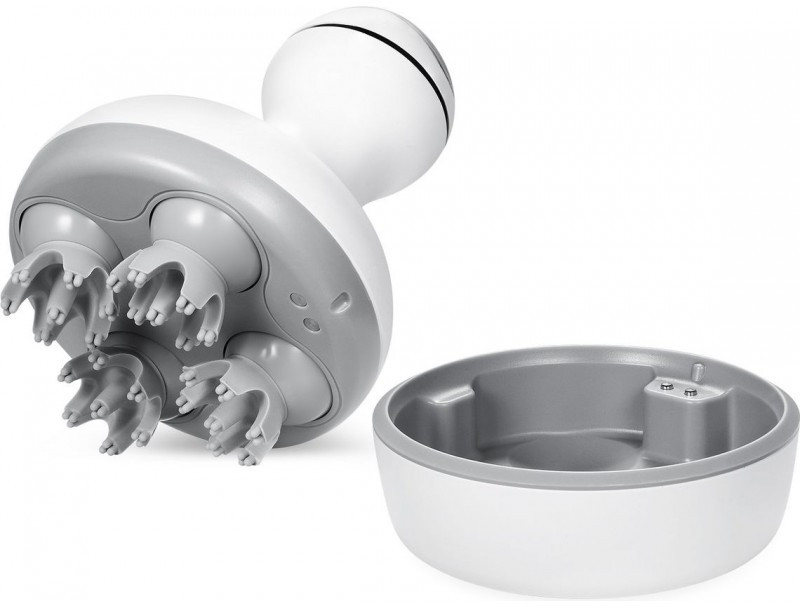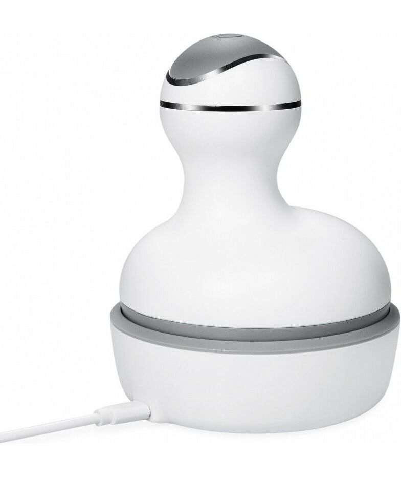 ПРИМЕНЕНИЕ: Установите массажер в базу, подключите провод к USB-разъему или при помощи адаптера к розетке. Перед процедурой рекомендуется удобно расположиться в кресле/на стуле. Поднесите массажер к голове или телу, нажмите на кнопку 1 раз. Медленно передвигайте массажер по поверхности головы/тела. Для переключения на второй режим (ускоренная работа) массажа нажмите на кнопку еще 1 раз. Чтобы закончить процедуру, удерживайте кнопку 3 секунды. Полный заряд батареи достигается за 2 часа.