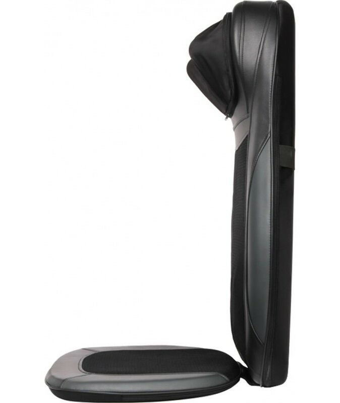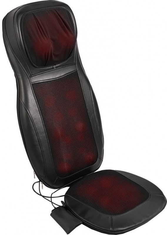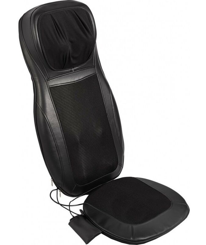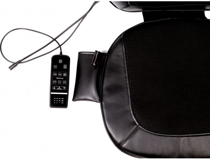 Массажная накидка с подогревом была разработана с учетом изгибов человеческого тела. Используя в своей основе технику Шиацу, она выполняет разминающий массаж роликами, подогрев и вибрацию, позволяя достигнуть полного расслабления мышц шеи, плеч и спины. Такой массаж способствует улучшению кровообращения и снятию мышечного напряжения. Вы можете легко выбирать различные области массажа шеи или спины, или включать их одновременно. Переключение режимов осуществляется при помощи пульта управления. Благодаря универсальной системе крепления вы с легкостью можете использовать накидку на любимом стуле или кресле. Особенно массажер-накидку оценят автолюбители: используйте ее для подогрева сиденья в холодном салоне автомобиля, снятия усталости и 30-минутного перерыва во время длительных поездок (адаптер в комплекте).