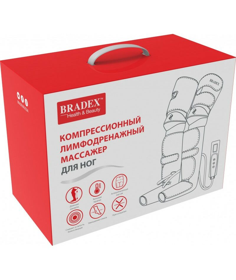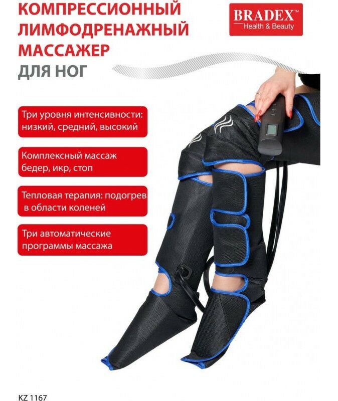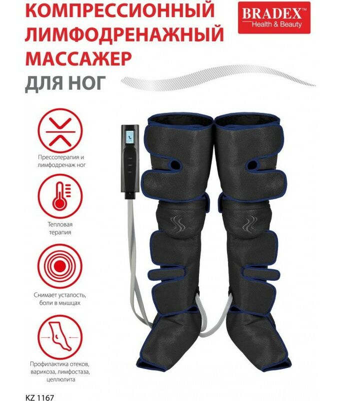 Компрессионный лимфодренажный массажер для ног Bradex KZ 1167 прогрев коленей, длинные манжеты, черный