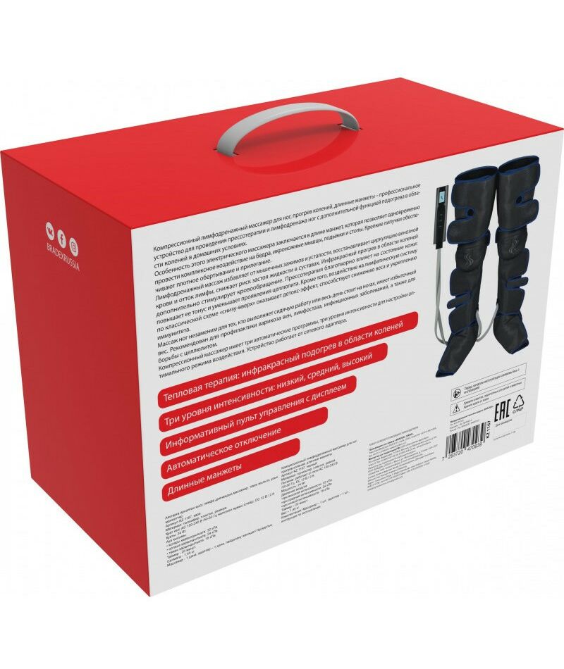 Компрессионный лимфодренажный массажер для ног, прогрев коленей, длинные манжеты, черный – профессиональное устройство для проведения прессотерапии и лимфодренажа ног с дополнительной функцией подогрева в области коленей в домашних условиях.