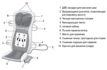 - Массажная накидка шиацу на сиденье из искусственной кожи, мягкого велюра и «дышащей» ткани Mesh