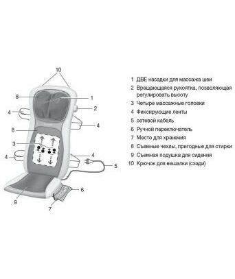 - Возможность выбора массажной зоны: верхний или нижний отдел спины, вся спина