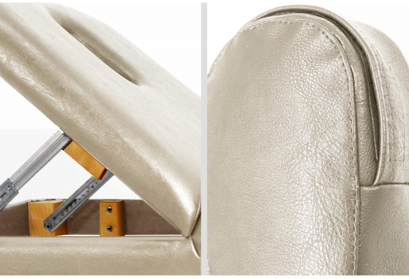 - Продуманная конструкция модели обеспечит максимальный комфорт клиенту во время массажа спины, шеи и ног. Учитывая специфику массажных процедур, в подголовнике кушетки предусмотрено отверстие для лица. Для дополнительного удобства клиентов мастер сможет отрегулировать наклон подголовника с помощью механического фиксатора.