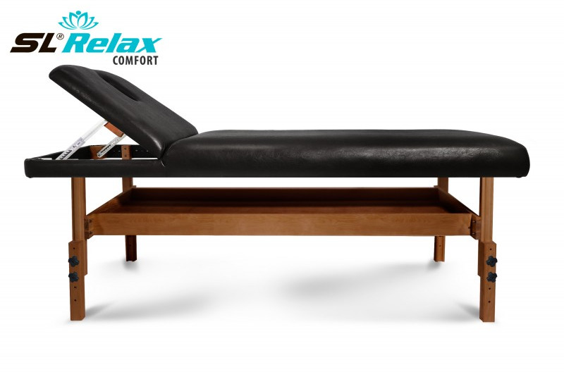 Стационарный массажный стол Comfort SLR-4 бренда SL Relax подойдет для профессионального массажа. Цвет обивки черный.Продуманная конструкция модели обеспечит максимальный комфорт клиенту во время массажа спины, шеи и ног. Учитывая специфику массажных процедур, в подголовнике кушетки предусмотрено отверстие для лица.