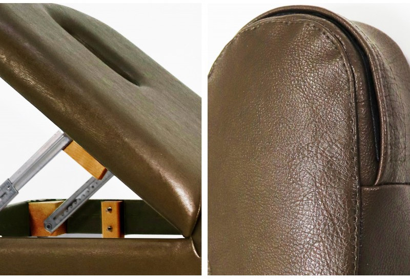 - Продуманная конструкция модели обеспечит максимальный комфорт клиенту во время массажа спины, шеи и ног. Учитывая специфику массажных процедур, в подголовнике кушетки предусмотрено отверстие для лица.
