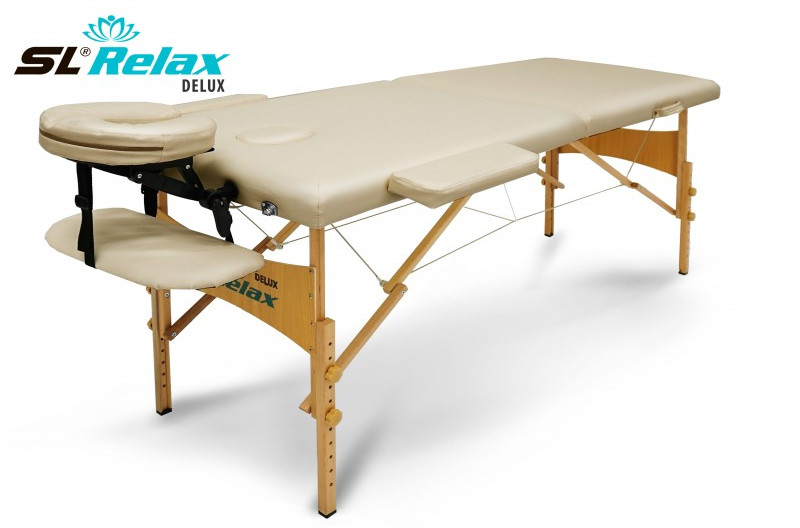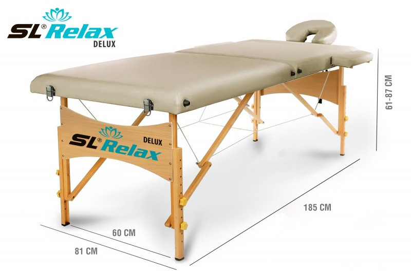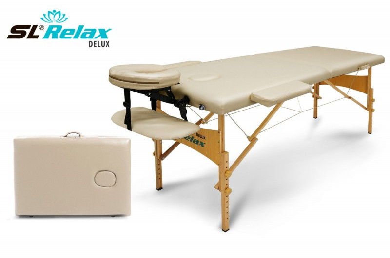 - Портативный складной массажный стол Delux BM2523-1 бренда SL Relax– оборудование, которое позволит выполнять услуги на высоком уровне и подойдет для любого вида массажа. Благодаря компактным размерам стол легко поместится в помещение с небольшой площадью.