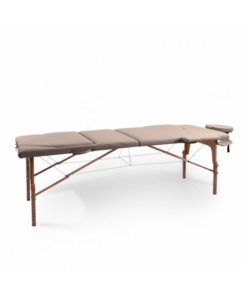 Деревянная кушетка для массажа выделяется невероятно прочной конструкцией, способной выдержать общую нагрузку до 250 кг (не перегружайте стол сверх рекомендованного предела веса). Благодаря своим компактным размерам 182 х 69 см, она идеально впишется даже в самые небольшие помещения. Возможность ручной регулировки высоты ножек от 61 до 81 см с шагом 3 см позволяет адаптировать стол под рост массажиста, обеспечивая наилучшую результативность сеансов массажа. Ложе толщиной 7 см обеспечит дополнительную поддержку и комфорт. Для еще большего удобства массажного стола в комплекте предусмотрены регулируемый по наклону и высоте подголовник и подставка для гаджетов, расположенная у изголовья, а также боковые подлокотники.