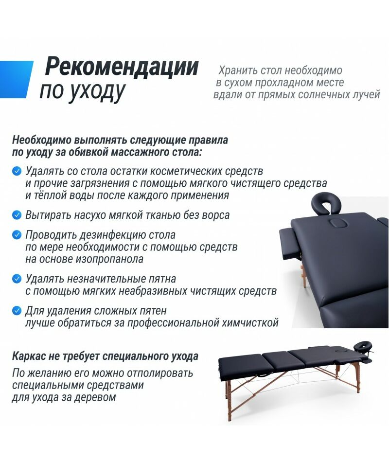Уход за столом прост и удобен. Обивку можно ежедневно чистить мягким моющим средством и теплой водой, после чего протирать сухой тряпочкой без ворса. Каркас стола не нуждается в особом уходе. Массажный стол UNIX Standard 3 Section — это идеальный выбор для тех, кто ценит высокое качество, комфорт и многофункциональность. Этот стол сделает вашу работу легче и приятнее, вне зависимости от того, профессионал вы или любитель.