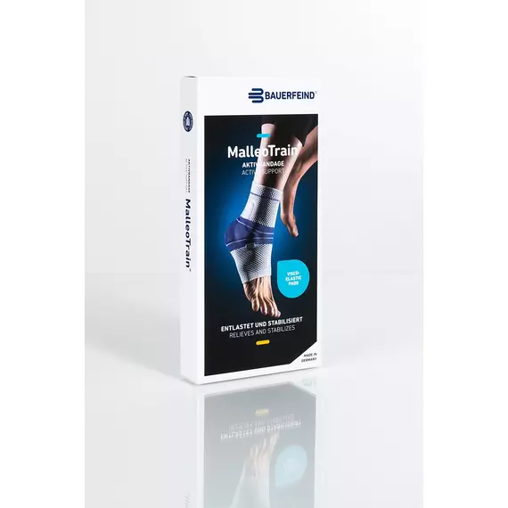 Динамический ортез BAUERFEIND MalleoTrain для мышечной стабилизации голеностопного сустава. Используется при воспалениях голеностопного сустава, вызванных травмами, операционным вмешательством или остеоартритом. Две анатомические силиконовые вставки с внутренней и внешней стороны способствуют снижению выпота. Переменная компрессия во время движения улучшает кровообращение суставной капсулы. Ортез способствует облегчению боли и снижает отёки, а дышащая ткань не раздражает кожу.
