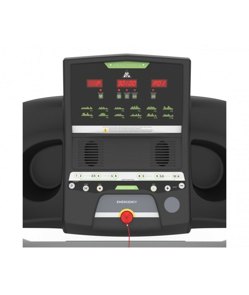 - Функциональный компьютер. Светодиодный дисплей размером 3” отображает пульс, время, калории, расстояние и скорость. Для тренировок предусмотрено 12 встроенных программ, 2 ручных режима, 3 пользовательских и тест на полноту