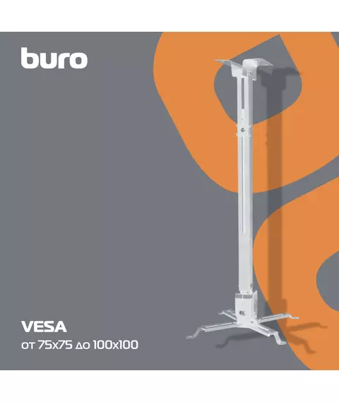 Кронштейн для проектора BURO PR04-100W белый макс.20кг потолочный поворот и наклон