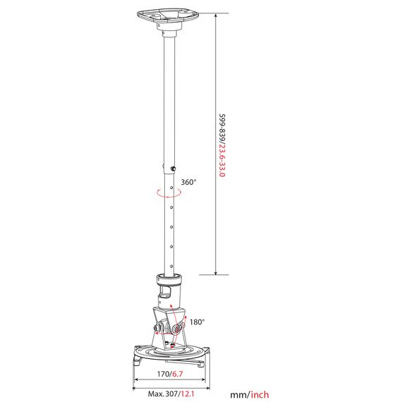 Кронштейн для проектора Cactus CS-VM-PR01L-AL серебристый макс.10кг потолочный поворот и наклон