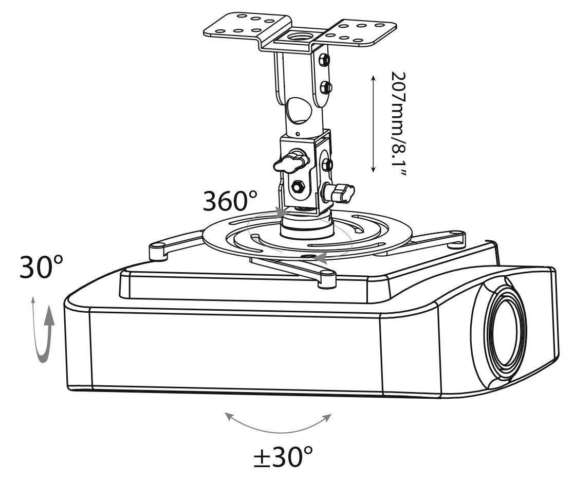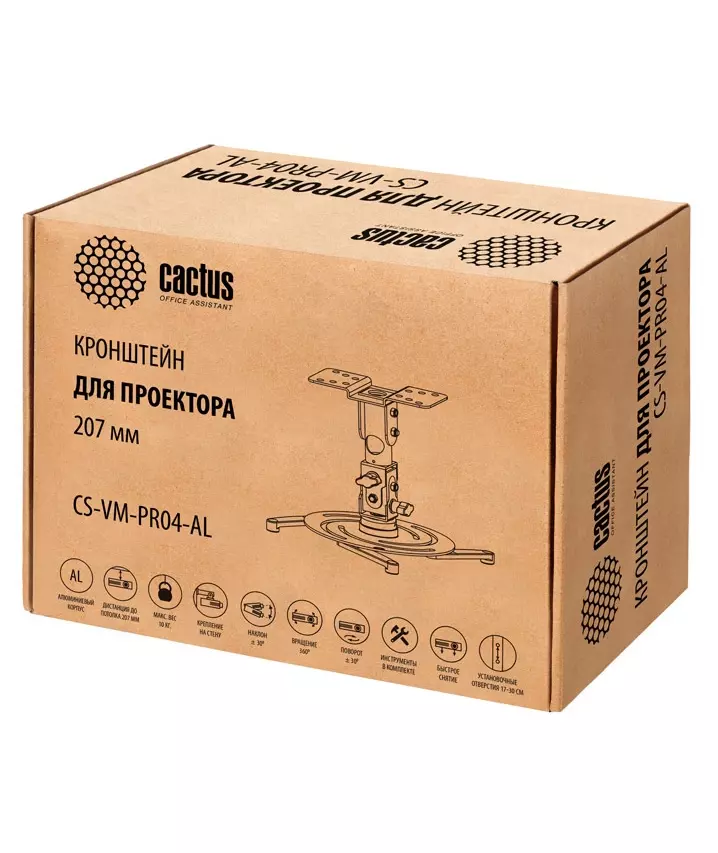 Кронштейн для проектора Cactus CS-VM-PR04-AL серебристый макс.22кг потолочный поворот и наклон