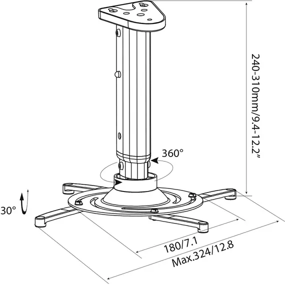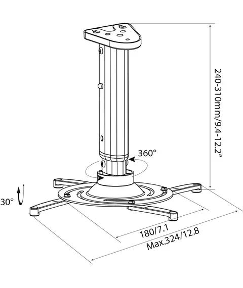 Кронштейн для проектора Cactus CS-VM-PR05M-AL серебристый макс.24кг потолочный поворот и наклон