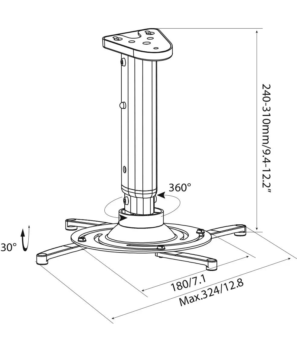 | Угол наклона | -30/+30 ° |