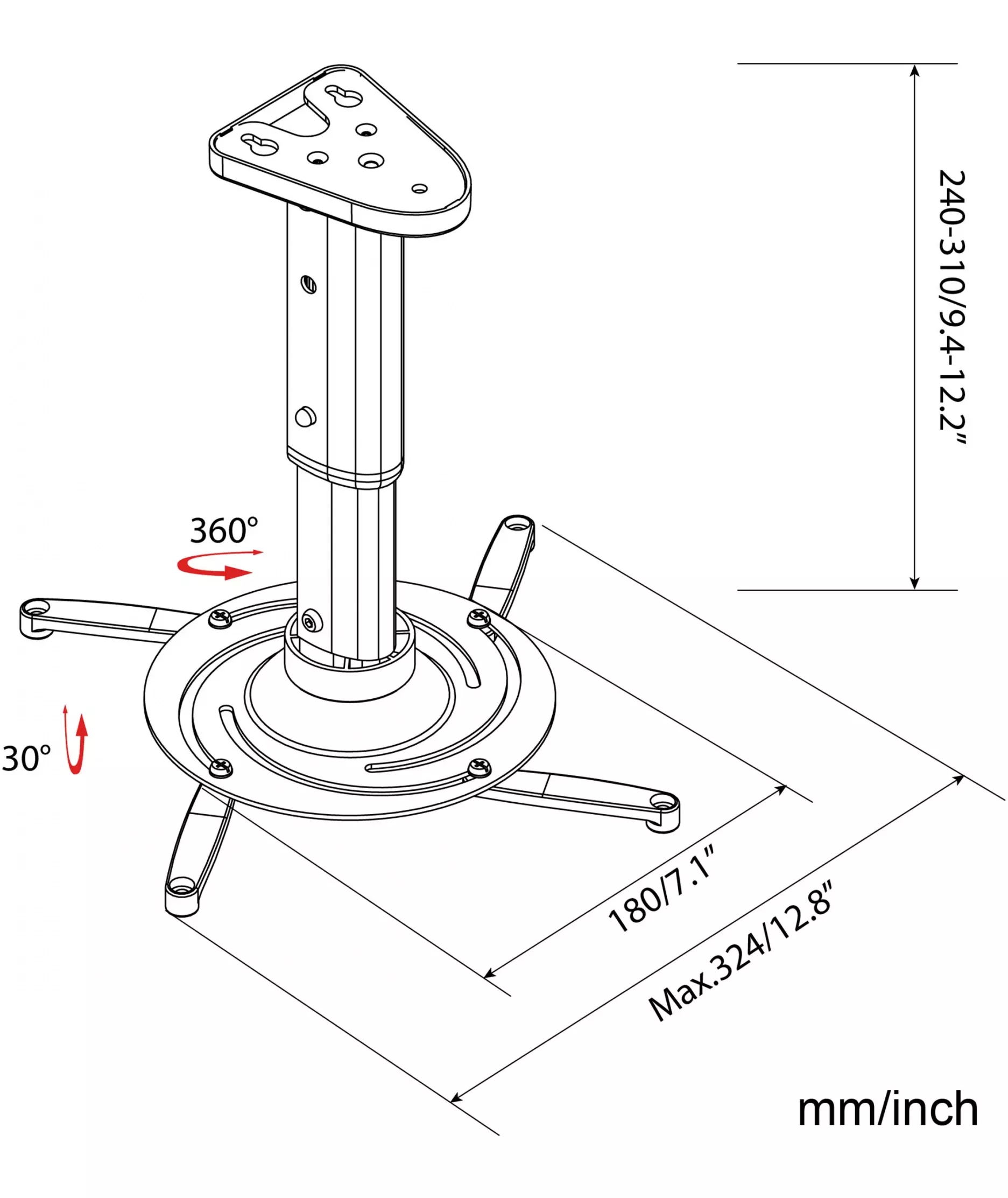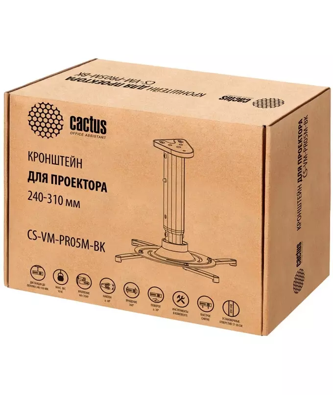 Кронштейн для проектора Cactus CS-VM-PR05M-BK черный макс.10кг потолочный поворот и наклон