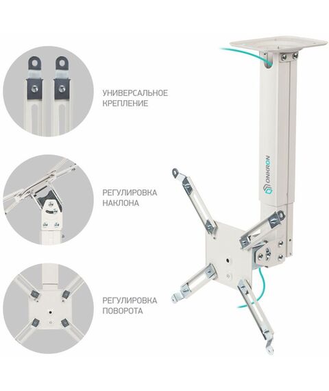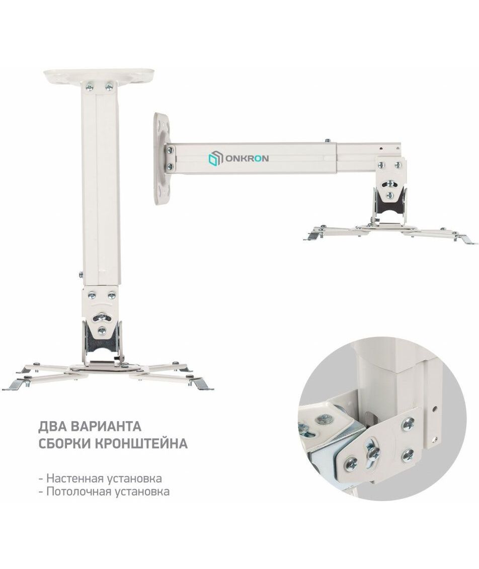 Кронштейн для проектора ONKRON K5A белый макс.10кг потолочный поворотно-выдвижной и наклонный