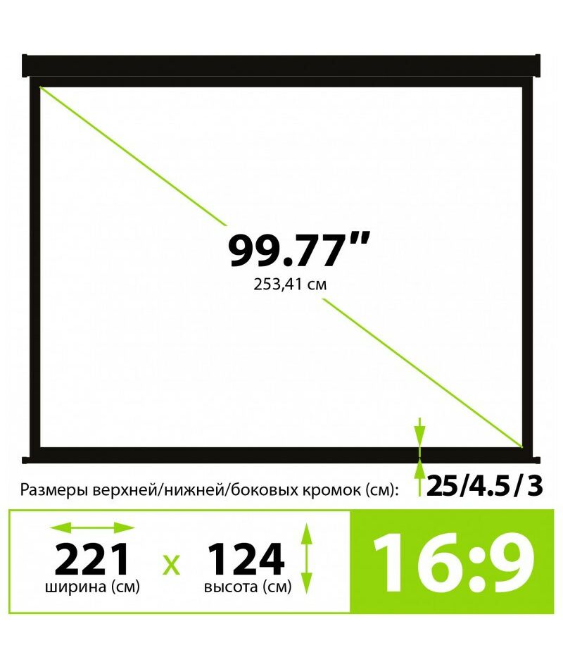 - Ширина экрана: 221 см