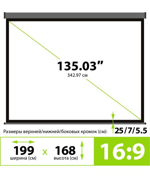 Экран настенно-потолочный рулонный Cactus CS-PSW-168X299-SG Wallscreen, 168x299см, 16:9, серый