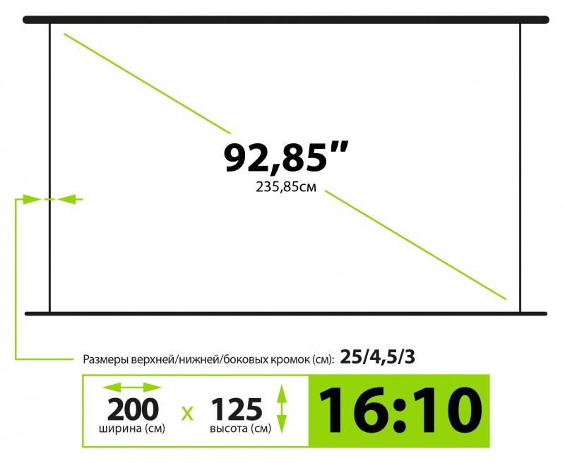 Экран настенно-потолочный рулонный Cactus CS-PSWE-200x125-WT WallExpert, 125x200см, 16:10