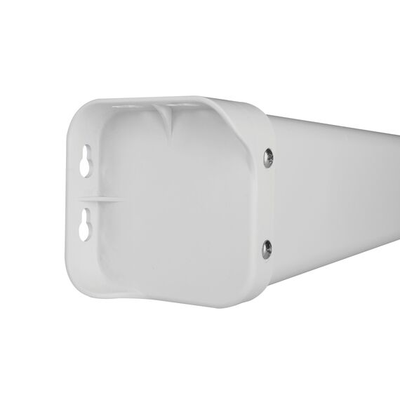 - Корпус экрана выполнен из стали с белым полимерным покрытием. Торцевые заглушки корпуса изготовлены из ударопрочного белого пластика.