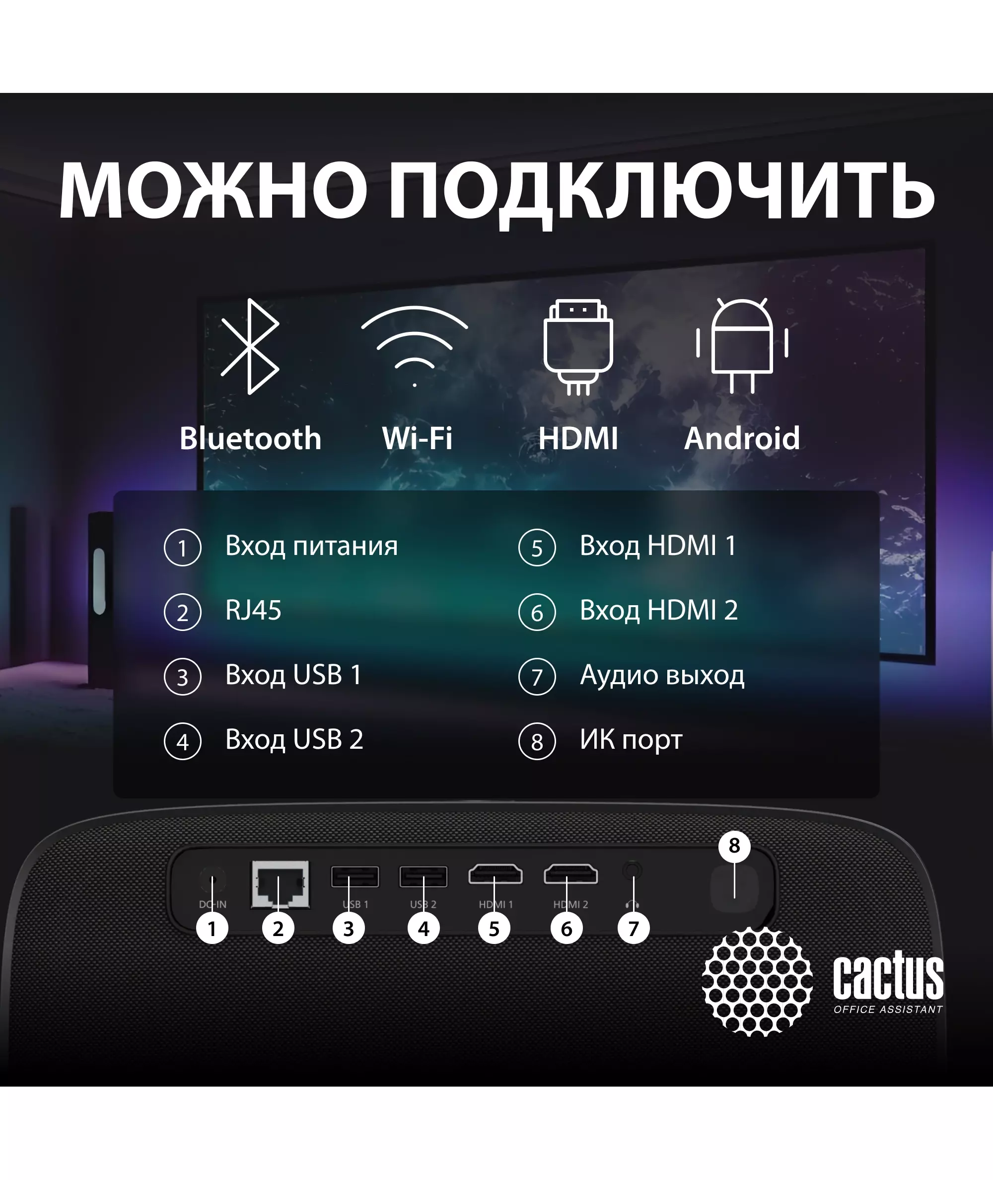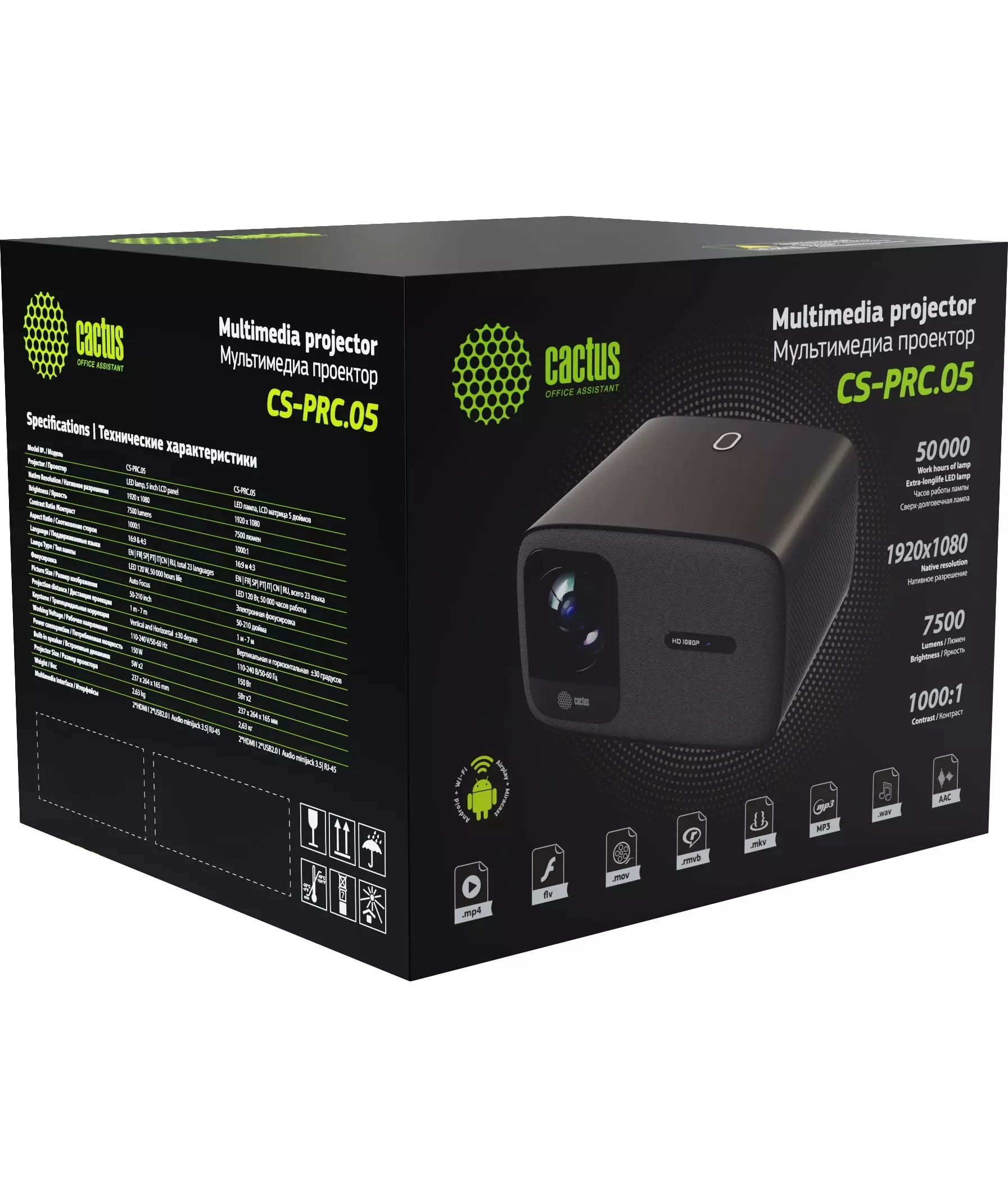 Проектор Cactus CS-PRC.05B.WUXGA-A LCD, 7500Lm, 750Lm ANSI, 1920x1080, 1000:1, 50000 часов, 2xUSB, 2xHDMI, 1.78кг