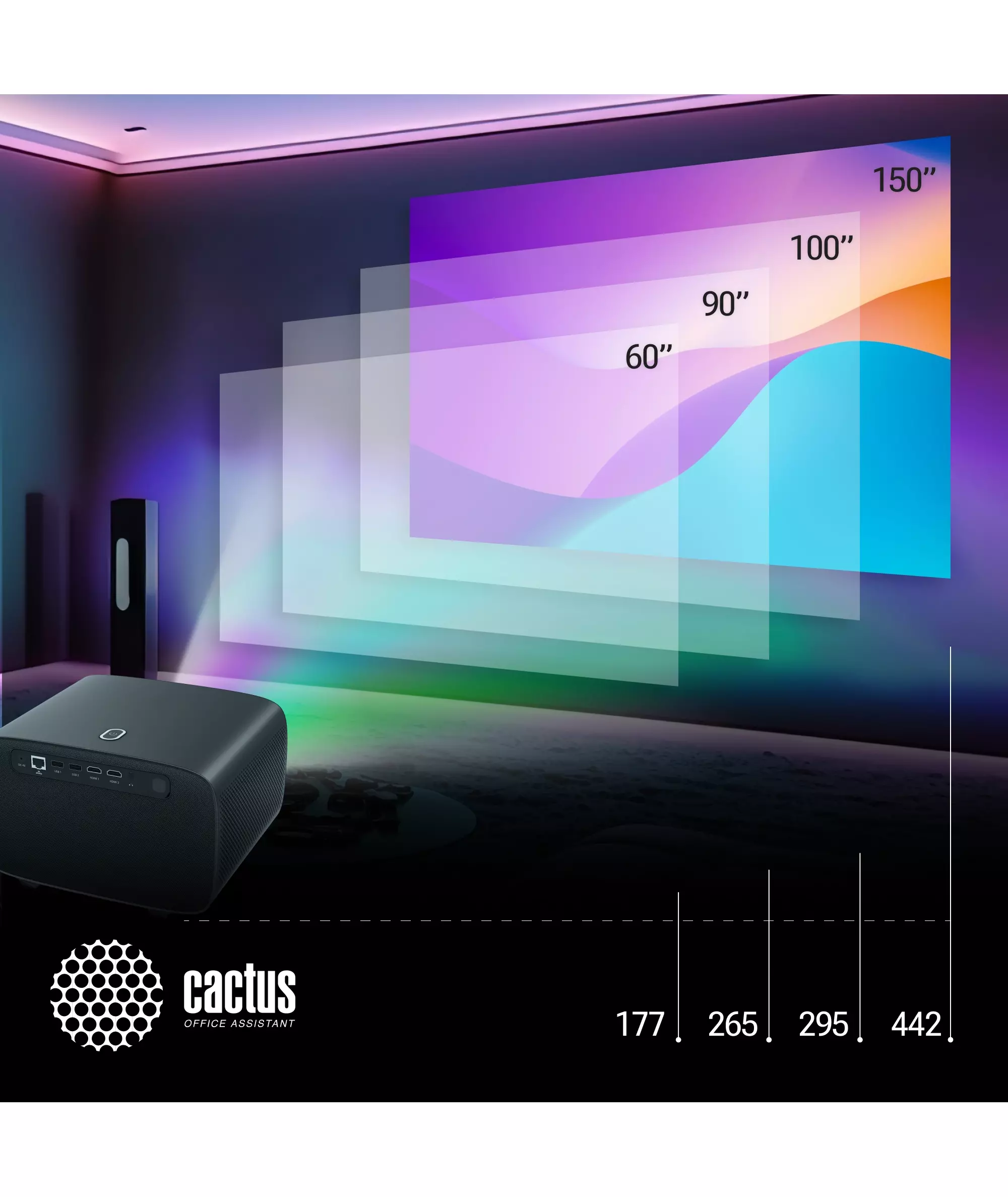 | Проекционное расстояние | 2-7м |