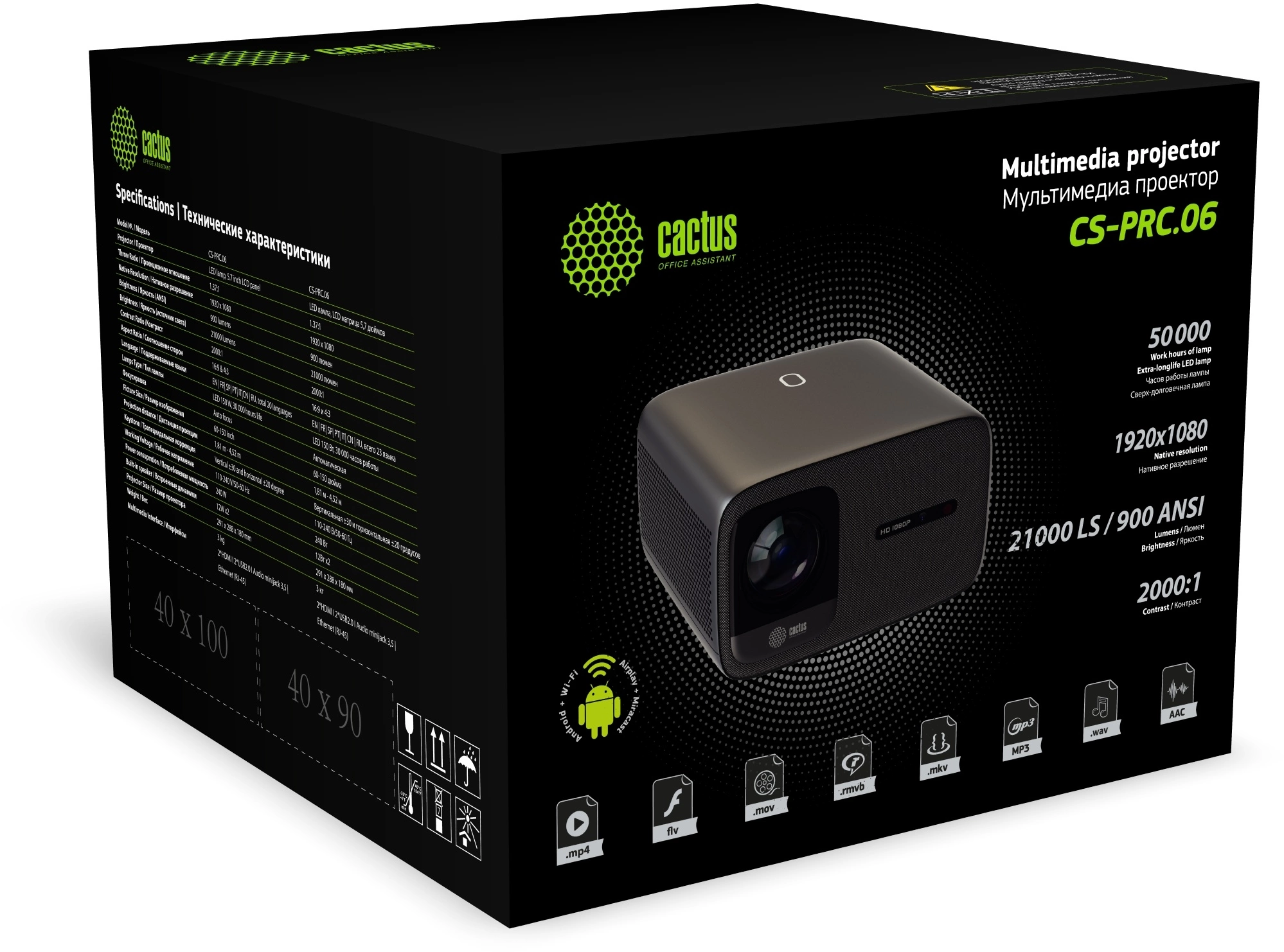 Проектор Cactus CS-PRC.06B Full HD-A LCD 900Lm ANSI (1920x1080) 2000:1 ресурс лампы: 50000 часов 2xUSB typeA 2xHDMI 3.0кг RTL [CS-PRC.06B.WUXGA-A]
