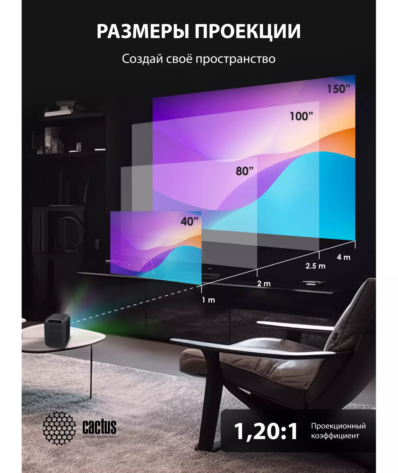 | Проекционное расстояние | 1.5-4м |